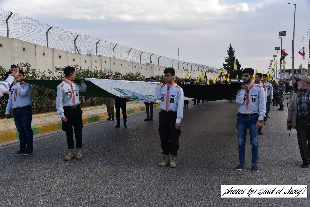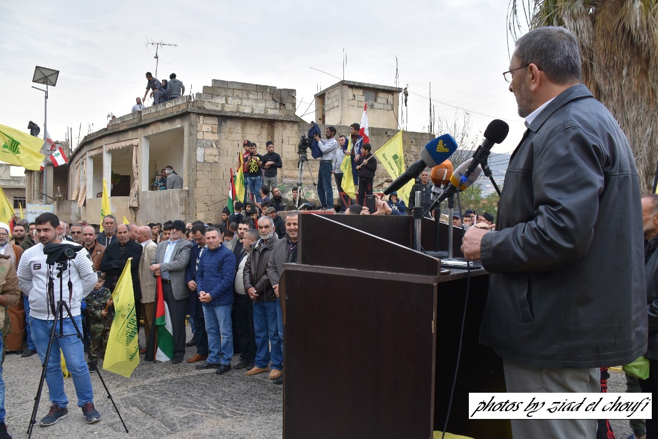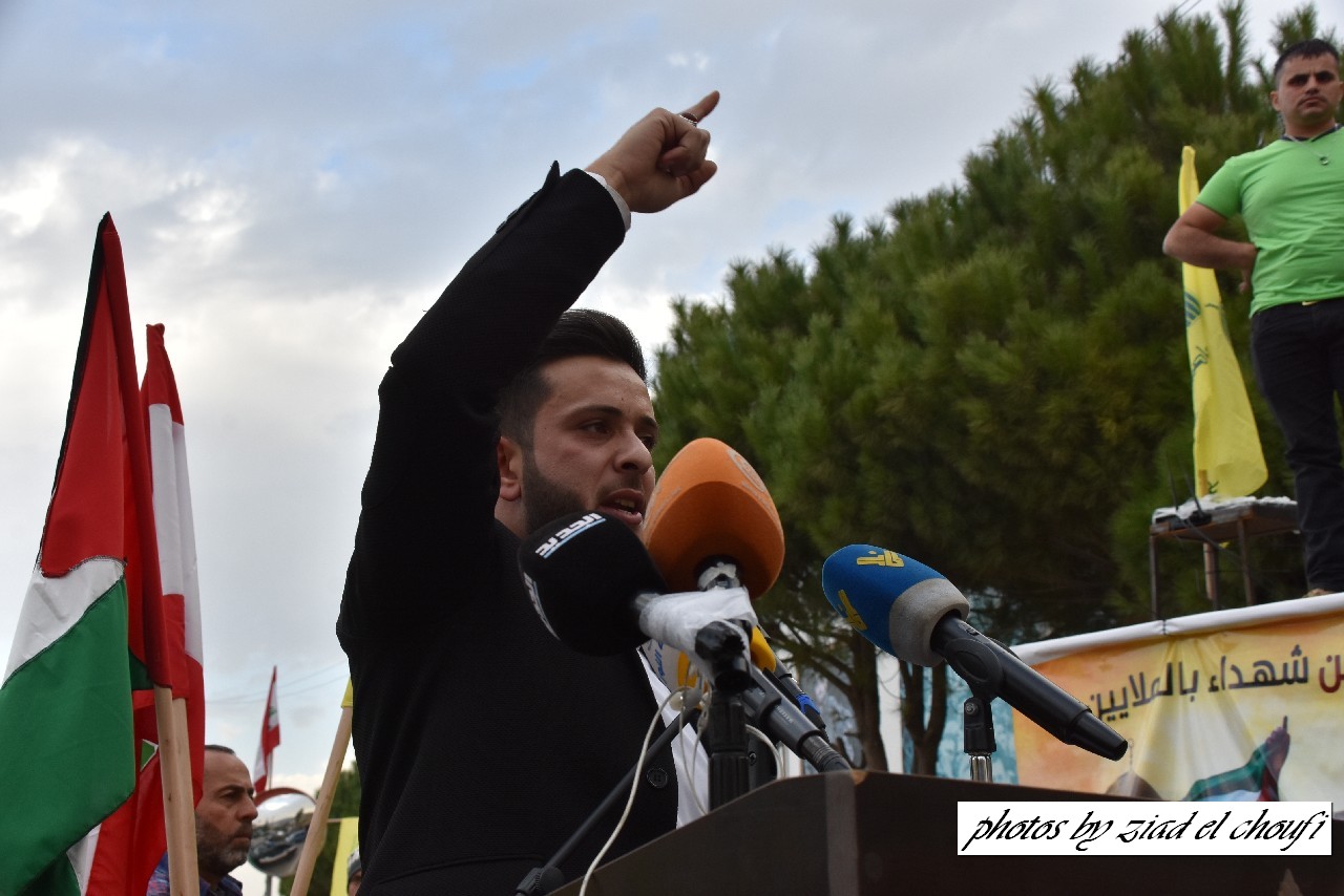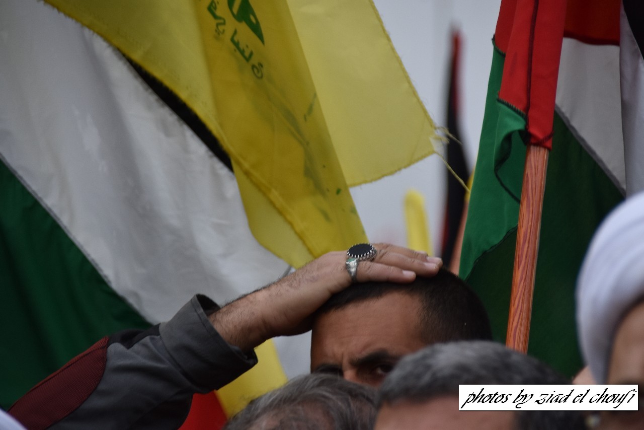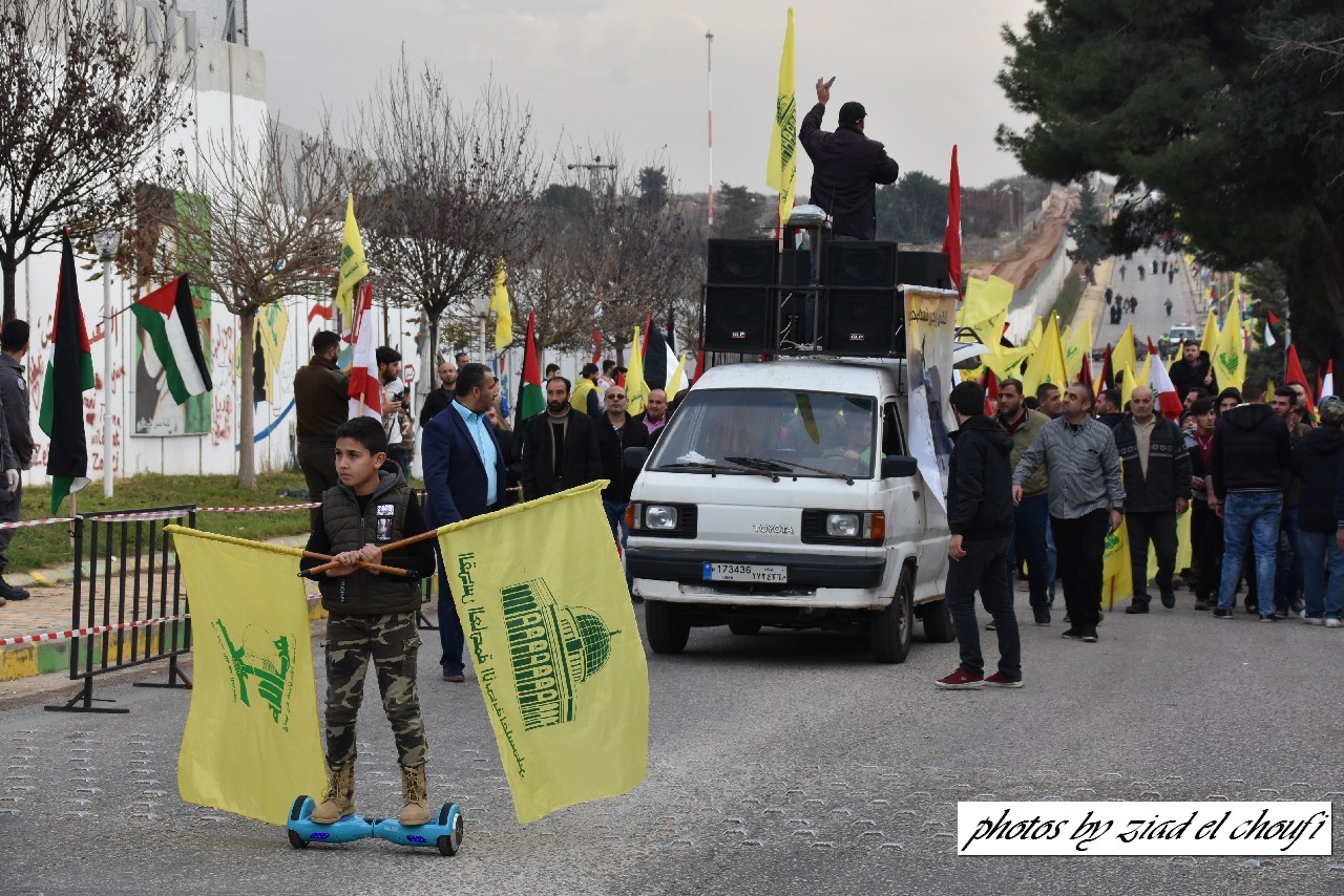 اقام حزب الله تظاهرة عند الحدود بمحاذاة جدار فاطمة نصرة للقدس الشريف وفلسطين ، حملت عنوان القدس عاصمة أبدية لفلسطين ، شارك فيها الشيخ حسن عز الدين مسؤول العلاقات الخارجية في حزب الله ، رئيس اتحاد بلديات جبل عامل علي الزين وعدد من رؤساء بلديات ومخاتير الاتحاد، ورجال دين وأئمة وفاعليات وممثلي القوى والاحزاب السياسية في المنطقة وعوائل الشهدا، وحشد من المواطنين القادمين من مختلف قرى جبل عامل حاملين الاعلام اللبنانية والفلسطينية ورايات حزب الله وعلم كبير لفلسطين ، وسط إجراءات امنية مشددة للجيش وقوى الامن في مكان الاحتفال حفاظا على السلامة العامة ومراقبة من قوات اليونيفيل وفريق مراقبي الهدنة الدوليين، ومراقبة من داخل الحدود لجنود العدو بواسطة الكاميرات المنتشرة على طول الجدار، الذي سبق أن اطلق (العدو) إرهابا قنبلتين صوتيتين باتجاه عدد من الشبان قاموا بالاقتراب من السياج التقني .قبل بدء التظاهرة.