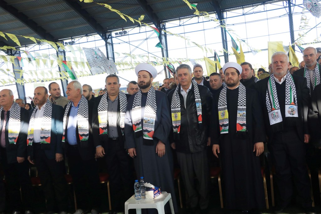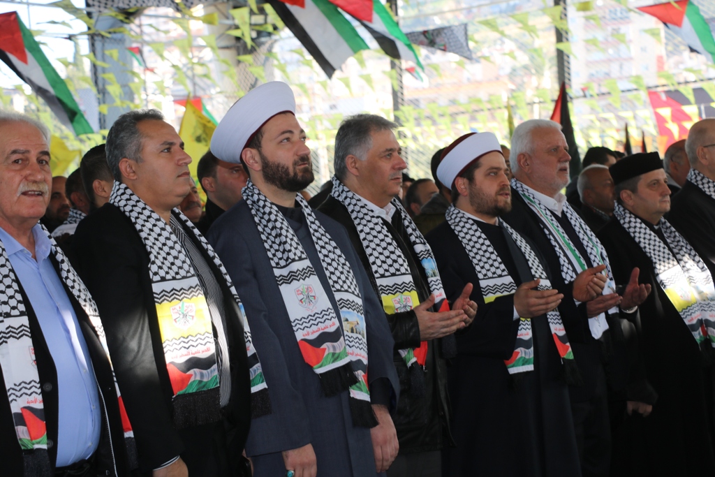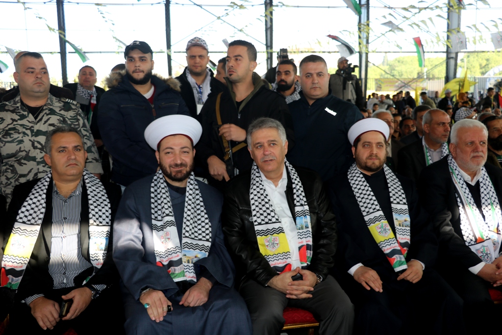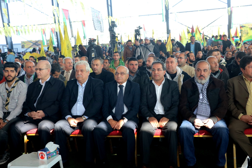 تقدَّم الحضور سعادة سفير دولة فلسطين لدى الجمهورية اللبنانية أشرف دبور، وأمين سر حركة "فتح" وفصائل "م.ت.ف" في لبنان الحاج فتحي أبو العردات، وأعضاء قيادة حركة "فتح" في الساحة اللبنانية، وأمين سر حركة "فتح" - إقليم لبنان وأعضاء قيادة الإقليم، وسماحة مفتي صور وأقضيتها الشيخ مدرار الحبال، وسماحة مفتي صيدا وأقضيتها الشيخ سليم سوسان ممثَّلاً بالشيخ إبراهيم الديماسي، ونيافة المطران مارون سيقلي ممثلاً مطران صيدا ودير القمر للروم الملكيين الكاثوليك إيلي بشارة الحداد، ونائب الأمين العام لـ"الجبهة الديمقراطية لتحرير فلسطين" فهد سليمان، نزار الرواس ممثلاً النائب بهية الحريري، محمد ضاهر ممثلاً الدكتور أسامة سعد، النقيب هاني القادري ممثلاً قائد منطقة الجنوب الإقليمية في قوى الأمن الداخلي العميد سمير شحادة، رئيس مكتب مخابرات الجيش في مدينة صيدا العميد ممدوح صعب، مسؤول حزب الله في صيدا الشيخ زيد ضاهر، رئيس تيار الفجر الحاج عبدالله الترياقي، وممثِّلون عن القوى والأحزاب الوطنية والإسلامية اللبنانية والفلسطينية، الأجهزة الأمنية اللبنانية، إلى جانب أمناء سر حركة "فتح" في المناطق التنظيمية في لبنان وأعضاء قيادة المناطق، بالإضافة لأمناء سر الشُّعب التنظيمية وأعضاء قيادة الشعب التنظيمية، وقيادة وكوادر المكاتب الحركية و"الاتحاد العام للمرأة الفلسطينية" – فرع لبنان، وجمعية "الهلال الأحمر الفلسطيني"، وجمعية "الكشّافة والمرشدات الفلسطينية"، وحشدٍ كبيرٍ من أبناء شعبنا الفلسطيني البطل القادم من أنحاء لبنان كافّةً.