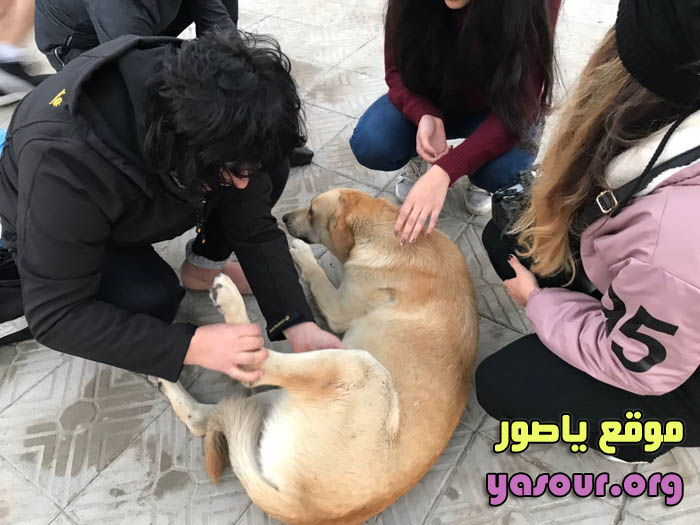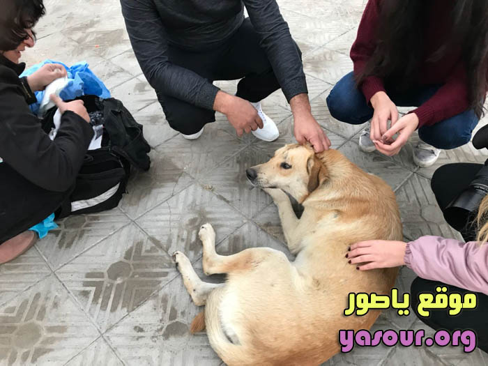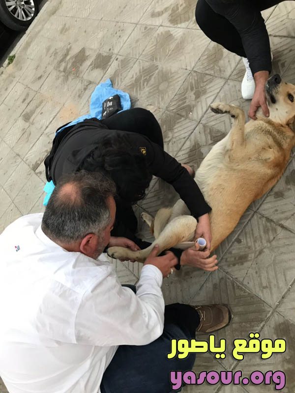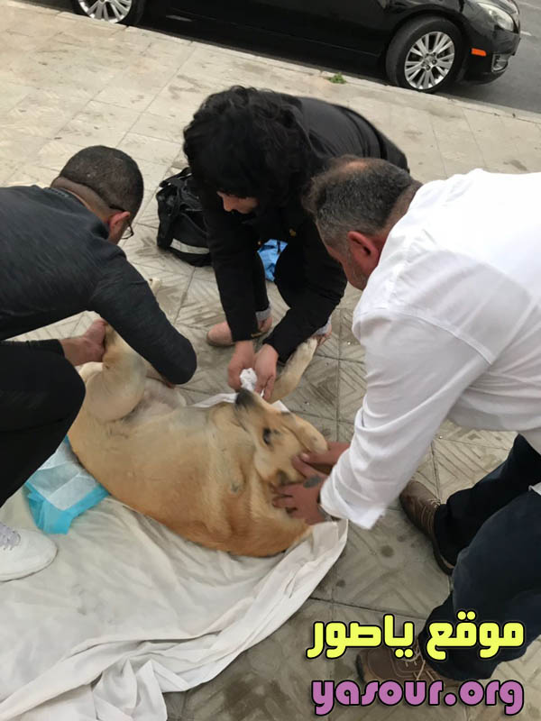 شبان مدينة صور يتعاملون بطريقة رحيمة واخلاقية مع الكلب الضال الذي صدمته سيارة