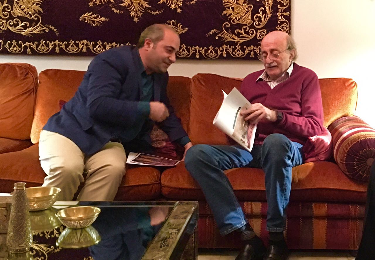 الفنّان غاندي بوذياب يسلّم الزعيم الدرزي النائب وليد جنبلاط لوحة زيتية من أعماله بعنوان «يدوم عزكُم» حول التراث الدرزي