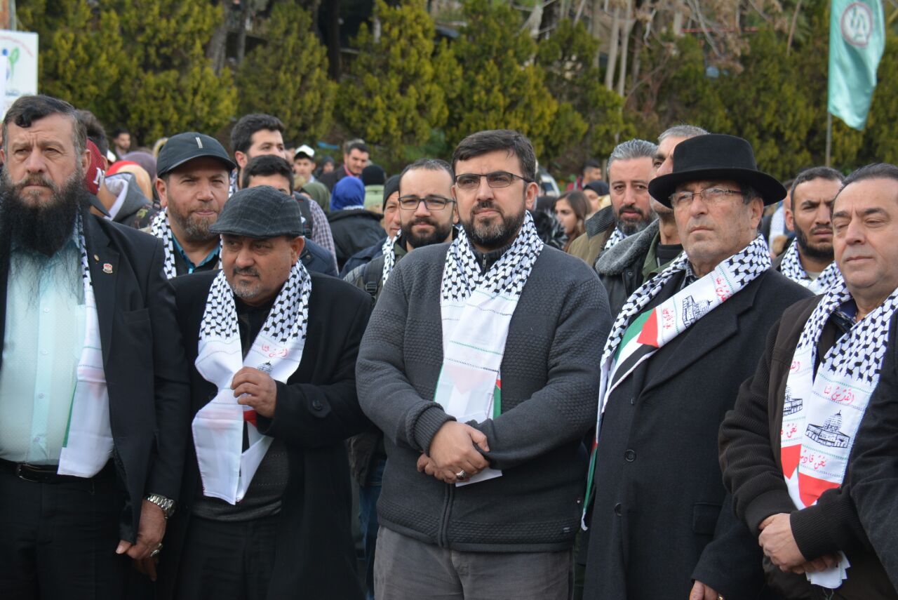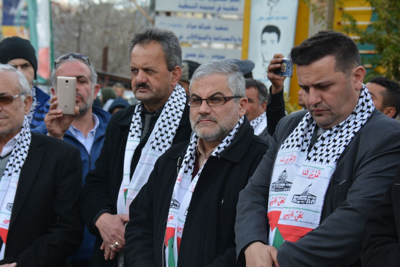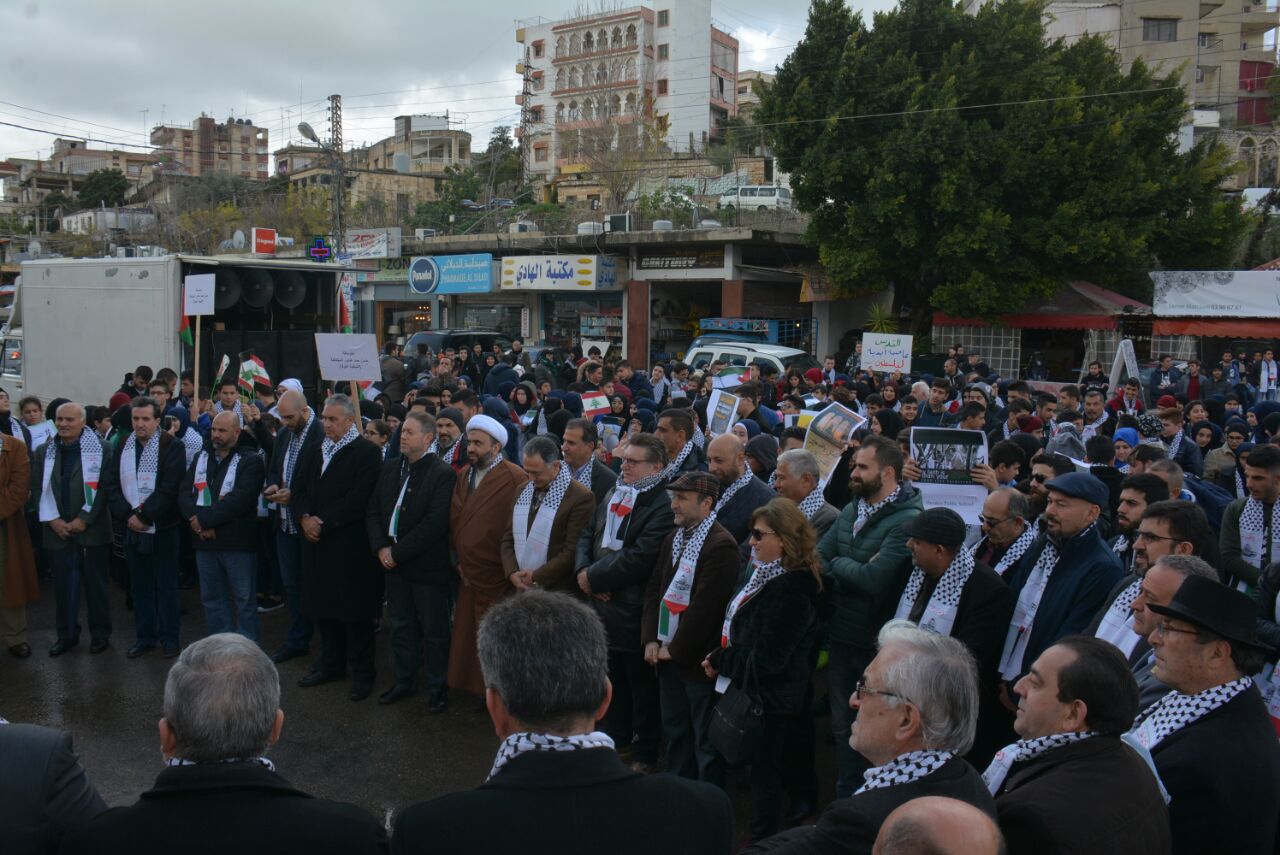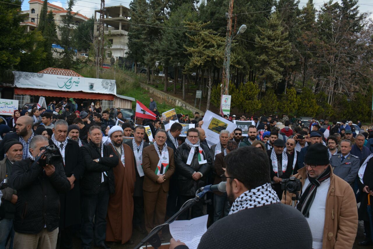 كلمة ترحيب وتقديم من عضو المجلس البلدي الدكتور عباس وهبي، ثمّ تحدث رئيس بلدية النبطية الدكتور احمد كحيل فقال: “من النبطية الى القدس تحية، ووقفة رمزية وصرخة نطلقها من هذه المدينة الحسينية المقاومة في وجه الظالم الاميركي وقراره الغاشم، ان القدس مدينة عربية وفلسطين عربية، ولا وجود لإسرائيل حتى يكون لها عاصمة، ولن تخيفنا فرقعات اعلامية هنا وتصفيق هناك”.