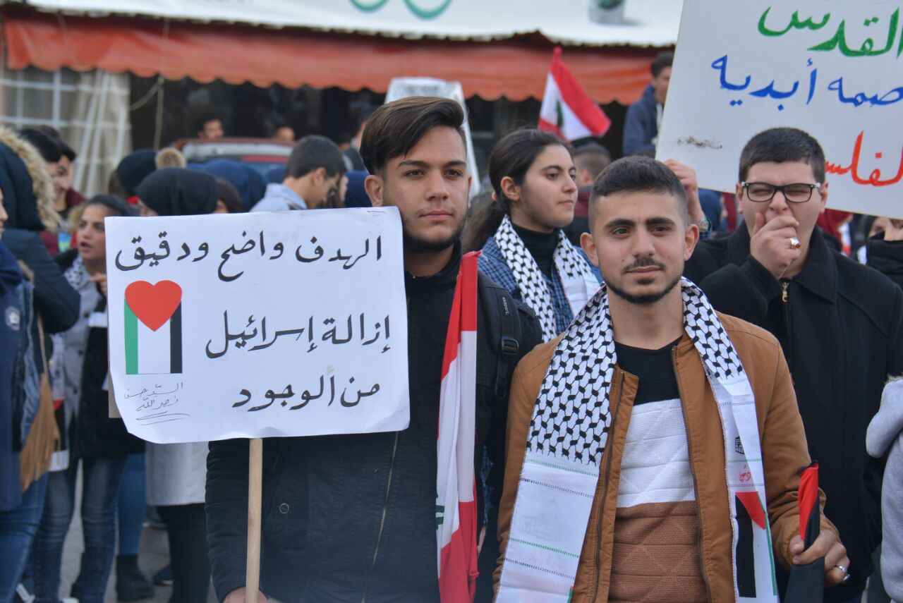 وحمل المشاركون أعلاماً لبنانية وفلسطينية وصوراً للمسجد الاقصى، ولافتات تؤكد في نصوصها أن القدس عاصمة أبدية لفلسطين