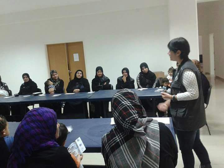 _نشاط مع جمعية intersosعن العنف الاسري مع اللاجئات السوريات وتوزيع هدايا رمزية للحاضرات
