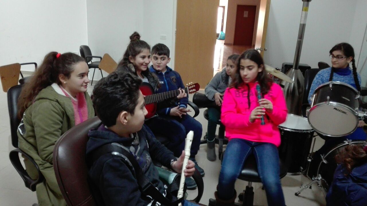 افتتحنا صفا موسيقيا ممولا من جمعية أغصان ومع مشاركة ومتابعة دائمة من رئيس الجمعية الدكتور كامل والسيدة منى مرقص وفي ختام كل فصل يقام احتفال تشجيعي لطلاب الموسيقى مع المدرب الاستاذ أنيس راشد.