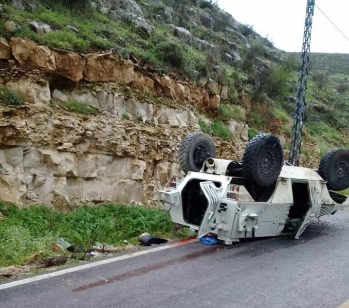 افادت مندوبة الوكالة الوطنية للاعلام الين سمعان، عن انقلاب آلية تابعة للجيش اللبناني وأخرى تابعة للكتيبة الفرنسية (ضمن قوات اليونيفل العاملة جنوب لبنان)، وذلك، عند مفرق بلدة تولين في وادي الحجير، ما ادى الى وقوع عدد من الجرحى.