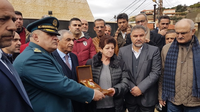 وفي ختام الاحتفال، قدم طاهر دروعاً تقديرية لكل من السيدة سعاد ارملة الشهيد ابو عساف والزميل علي شعيب وممثل قائد الجيش العقيد حمود.