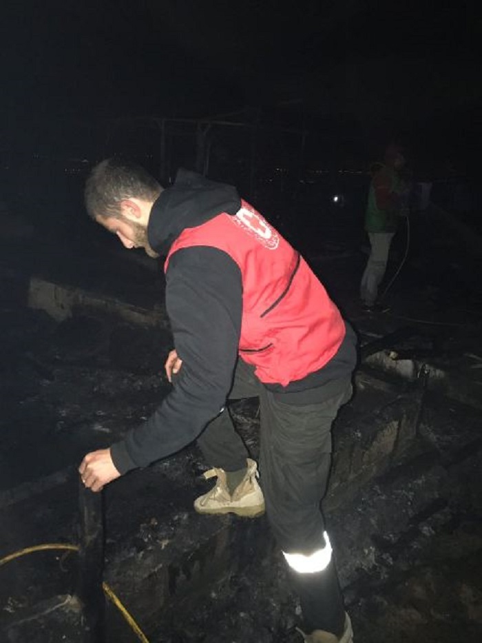 السوري عبدالفتاح حمود الحمد، هو من سارع الى تنبيه اصحاب الخيم من الحريق الذي انتقل بسرعة من خيمة الى اخرى جراء الرياح وتطاير شرارات النار من مكان الى آخرلتأتي على 16 خيمة وتضرر البعض الاخر".