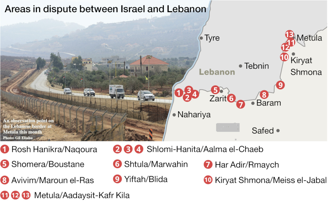 وعدّد الكاتب النقاط الخلافيّة وهي: النقطة الأولى: الحدود بالقرب من روش حنيكره/الناقورة، 3 نقاط مقابل مدينة شلومي/علما الشعب، النقطة الخامسة بالقرب من شوميرا/البستان، النقطة السادسة بالقرب من شتولا/مروحين، النقطة السابعة مقابل جبل آدير/الرميش، النقطة الثامنة مقابل أفيفيم/مارون الراس، النقطة التاسعة مقابل يفتاح/بليدا، النقطة العاشرة مقابل كريات شمونة/ميس الجبل، إضافةً الى 3 نقاط أخرى مقابل المطلّة/العديسة وكفركلا.