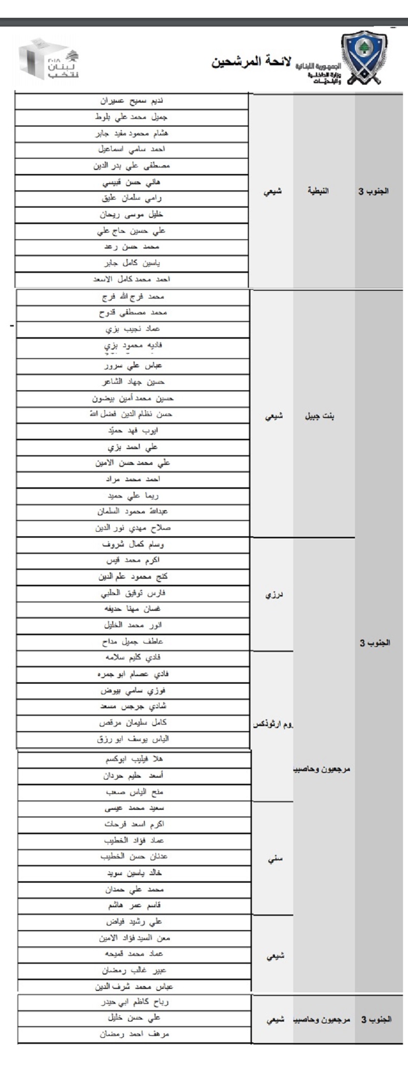 رست الترشيحات في دائرة الجنوب الثالثة على 58 مرشحاً (علي علوش)