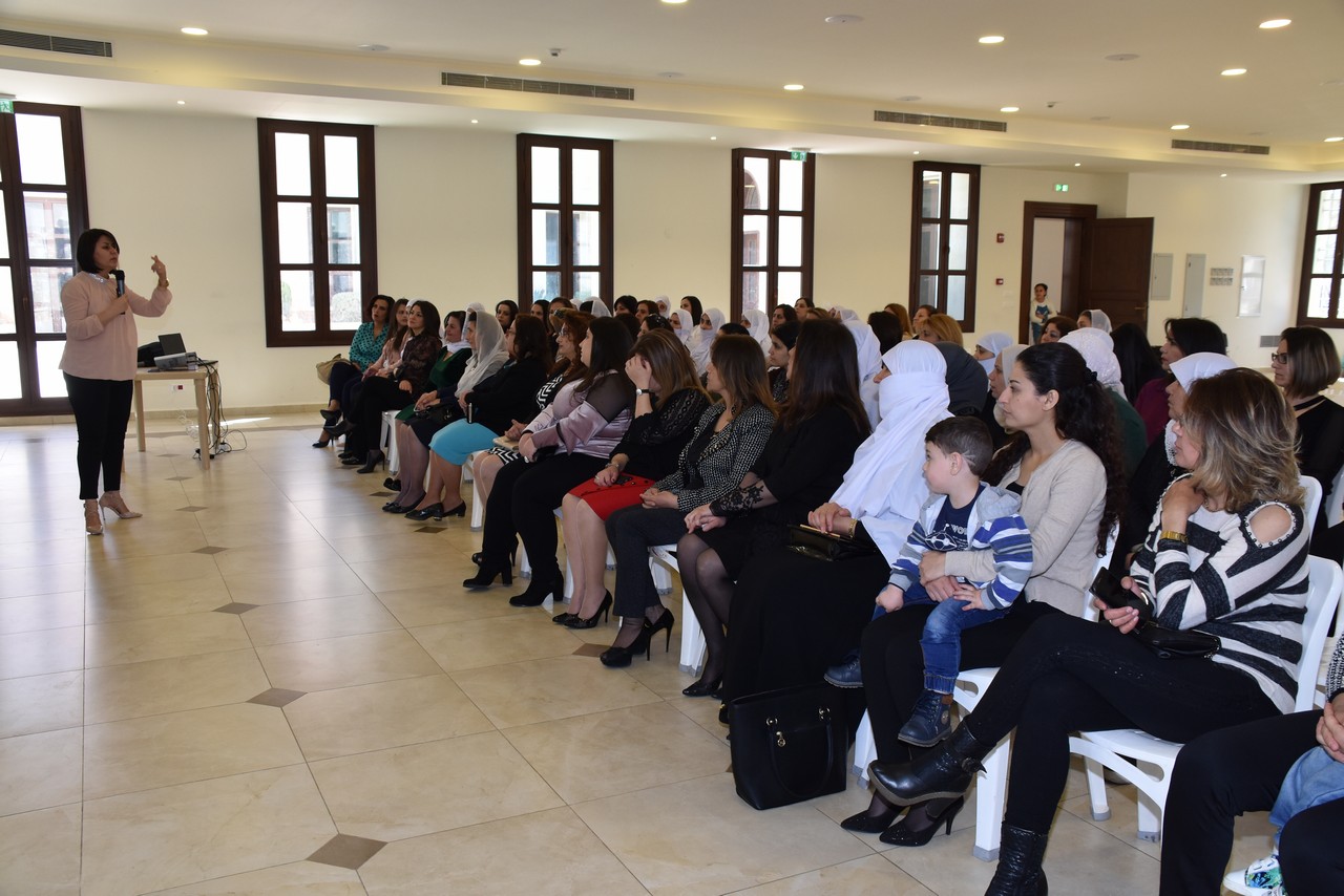 بداية النشيد الوطني وكلمة مديرة المدرسة الاستاذة مها شرف، عايدت فيها الامهات بعيدهن وأكدت على متابعة النشاطات الهادفة في المدرسة وعلى أهمية المحاضرة اليوم التي تلقي الضوء على أمور مهمة في ح-ياتنا اليومية تتعلق بتربية الاطفال
