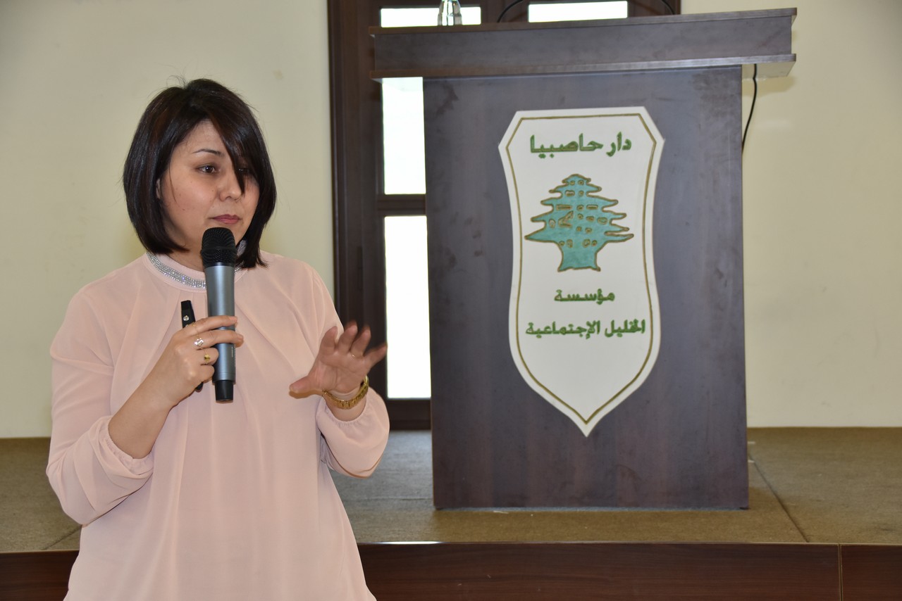 بعدها حاضرت الاخصائية في علم النفس العيادي والتوافقي السيدة دلال الحلبي عن دور الاسرة في نجاح الطفل مستقبلياً وعن دور الام والاب وأهمية المشاركة والتوازن في عملية التربية وعدم اقتصار دور الاب على العمل خارج المنزل ، وعلى العمل للتنبه لمشاكل الطفل قبيل وقوعها والعمل على تفاديها وللمدرسة هنا دور بالمساعدة ويبقى الدور الاكبر للاهل في التربية والتوجيه منذ الصغر ، كما تحدث عن العقد الثلاث الاهم في حياتنا وطريقة التحكم بها (الفصام، الدخيل وعقدة أوديب ) . كما اكدت أن الاقلال كما الافراط في الاهتمام يولد المشاكل للطفل ، فالوسطية هي انجع الحلول ، وضرورة افساح المجال له للاتكال على نفسه لبناء شخصيته القوية والتدخل عند الحاجة فقط ، كما شرحت عن انواع الذكاء الاجتماعي واهمية اعتماد لغة التحاور والتواصل مع الطفل والمناقشة في كثير من الامور التي يحتاج لتفسيرات لها والتركيز على كلمات التشجيع التي لها الاثر الكبير في بناء شخصيته القوية