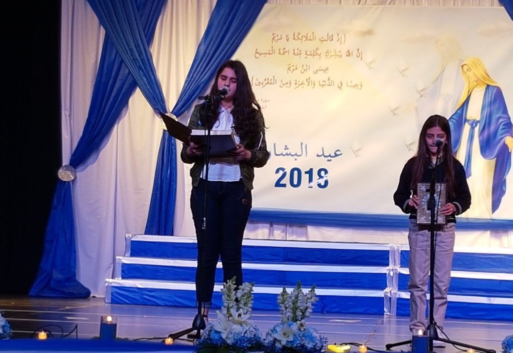 إحتفل تلامذة ثانوية راهبات القلبين الاقدسين في مرجعيون وتلامذة ثانوية عيسى بن مريم التابعة لجمعية المبرات للعلامة السيد محمد حسين فضل الله، بعيد البشارة تحت عنوان "مريم العذراء عنوان كبير للقاء بين الاسلام والمسيحية"، على مسرح مدرسة المبرات في الخيام، وهو تقليد سنوي بين المدرستين يهدف الى تلاقي ابناء المنطقة وتوجيه رسالة تعايش ومحبة وسلام، في حضور النائب أنور الخليل ممثلا بزياد سليقا، النائب اسعد حردان ممثلا بنيللي حداد، متروبوليت صيدا وصور وتوابعهما المطران الياس الكفوري ممثلا بالأب فيليب العقلة، عضو الهيئة الشرعية في مكتب المرجع السيد محمد حسين فضل الله الشيخ جهاد فرحات، رئيس بلدية جديدة مرجعيون أمال الحوراني ممثلا بحسان عبلا، رئيس بلدية الخيام علي عبدالله ممثلا بمحمد حمود، رئيس مركز الدفاع المدني أنيس عبلا، آمر سرية درك مرجعيون الرائد شربل حبيب، مسؤول مكتب الامن العام النقيب طوني طانيوس، مديرة ثانوية راهبات القلبين الأقدسين في جديدة مرجعيون الأخت لبيبة مبارك، مدير ثانوية "عيسى بن مريم" و"مبرة النبي ابراهيم" احمد عطية، وحشد من رؤساء المدارس والجمعيات والمصارف والأحزاب ورؤساء البلديات والمخاتير وفاعليات ولفيف من الكهنة والراهبات وأبناء المنطقة.