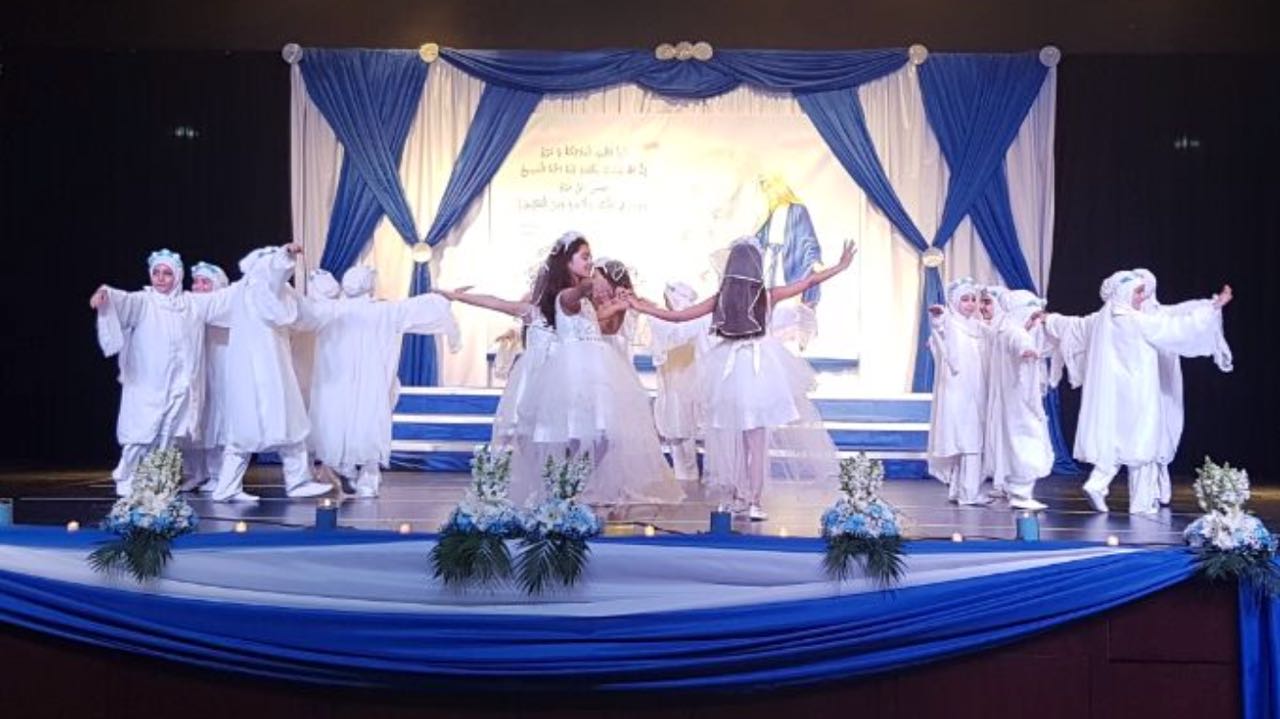 وتخلل الاحتفال لوحات راقصة لتلامذة المدرستين وتراتيل واناشيد ومشهديات عن السيدة العذراء.
