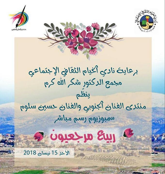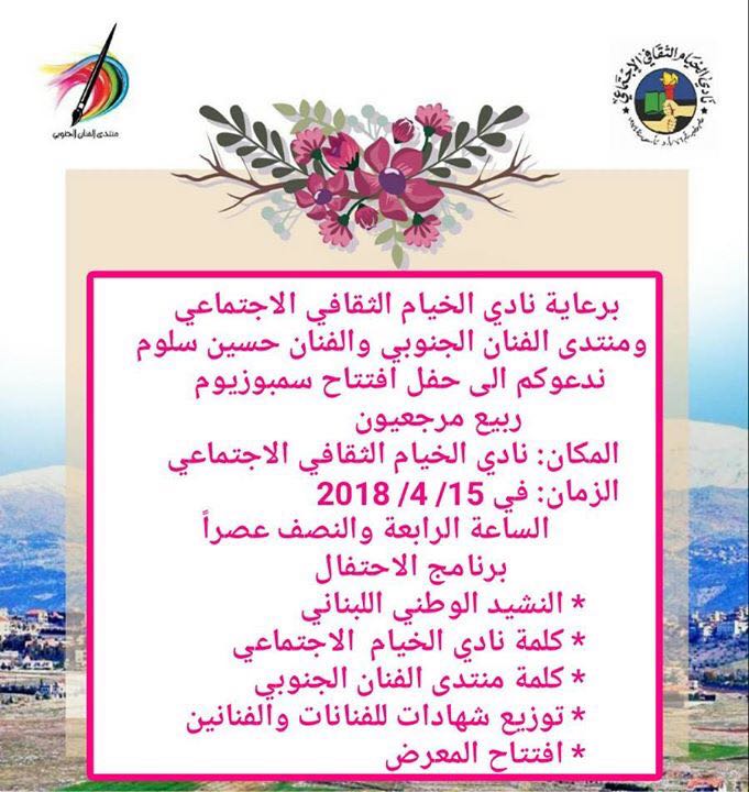 15 نيسان... وفي عز الربيع الجنوبي... ستلهم الخيام مخيلة حسين سلوم... وعبقرية كل فناني وفنانات منتدى الجنوبي.. لتفجّر لوحات تحكي لكل العالم عن الخيام الأجمل.. في ربيع مرجعيون...