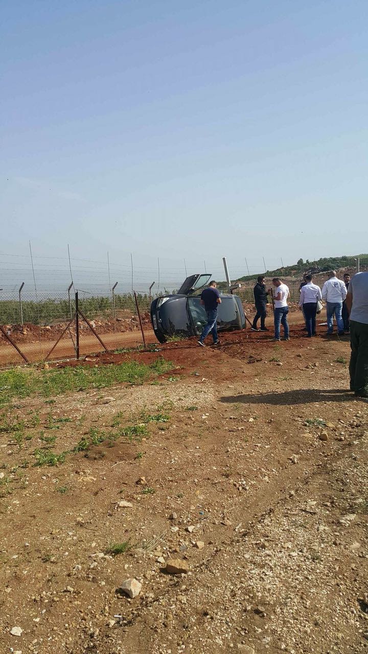 وفي التفاصيل ان سيارة من نوع هيونداي لون أسود تحمل اللوحة رقم 350822/و، انقلبت على طريق عام كفركلا- العديسة وارتطمت بالشريط الشائك الحدودي، فاستنفر جنود العدو من جهة فلسطين المحتلة، وقوات اليونيفيل من الجانب اللبناني. كما أصيب سائق السيارة "ح. ف." بجروح طفيفة.