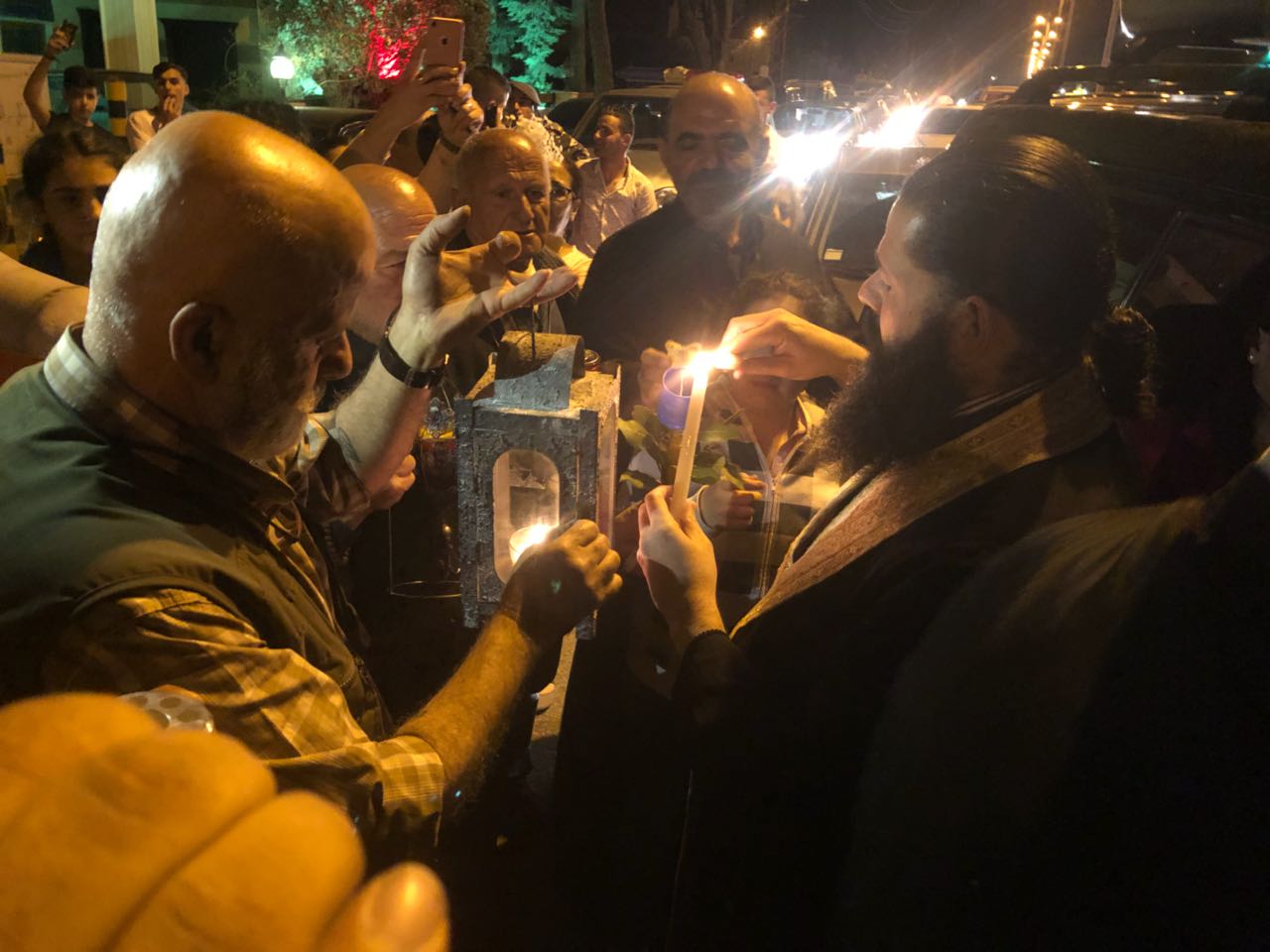 وصلت عند الساعة العاشرة من مساء اليوم الشعلة المقدسة الى جديدة مرجعيون حيث كان باستقبالها الأب فيليب العقلة، كاهن رعية مار جاورجيوس للروم الأورثوذكس، والأب حنا الخوري، كاهن رعية السيدة للموارنة، وحشد كبير من المؤمنين الذين جاؤوا من مختلف البلدات للتبارك وإضاءة شموعهم من الشعلة الآتية من قبر المسيح في أورشليم حيث ساروا غير مكترثين بالإمطار مرنمين "المسيح قام من بين الأموات" وصولاً الى كنيسة مار جاورجيوس بمؤازرة قوى الأمن وأمن الدولة وعناصر بلدية جديدة مرجعيون.