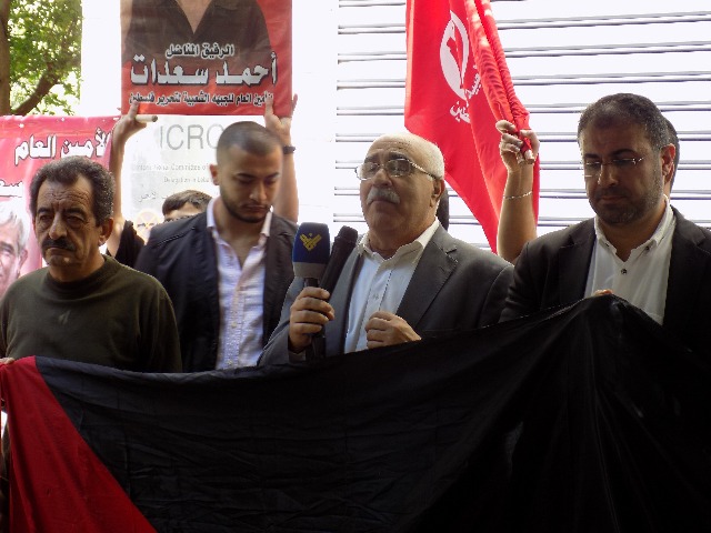 ثم كانت كلمة لمسؤول العلاقات السياسية للجبهة الشعبية لتحرير فلسطين في لبنان، أبو جابر، حيّا فيها الأسرى البواسل، وفي مقدمهم الأمين العام للجبهة الشعبية لتحرير فلسطين، أحمد سعدات، مؤكدا على ضرورة استمرار التحركات لنصرة الأسرى .