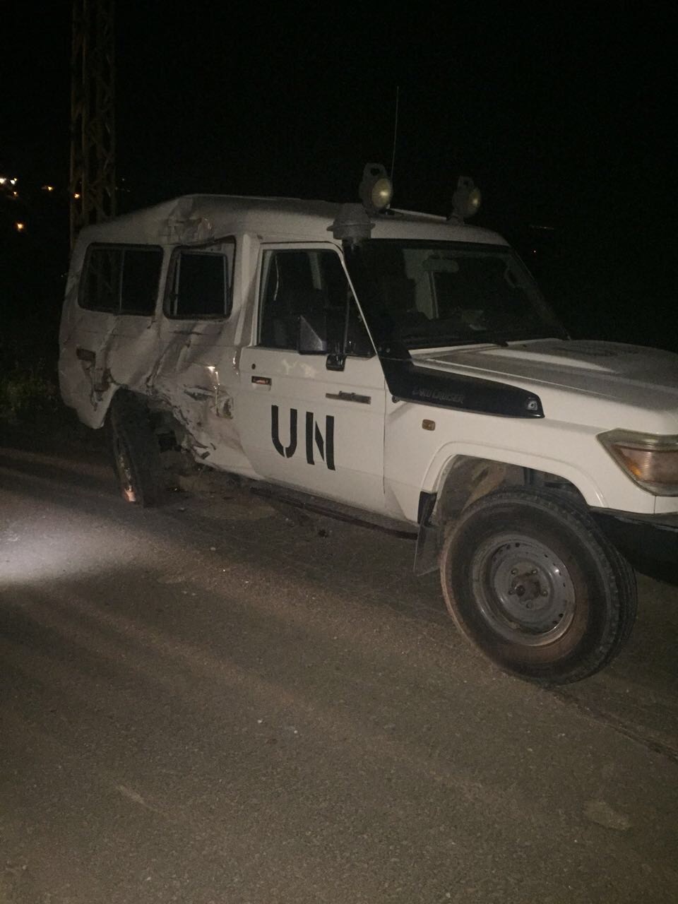 افادت مندوبة الوكالة الوطنية للاعلام في مرجعيون الين سمعان عن اصابة احد عناصرالكتيبة النيبالية، العاملة ضمن إطار قوات السلام "اليونيفيل "، بعدما اصطدمت الية تابعة للكتيبة من نوع لاند كروزر رقم 11256 بعامود على طريق العباد - العديسة، وتم نقله من قبلهم الى احدى مستوصفاتهم الخاصة للمعالجة.