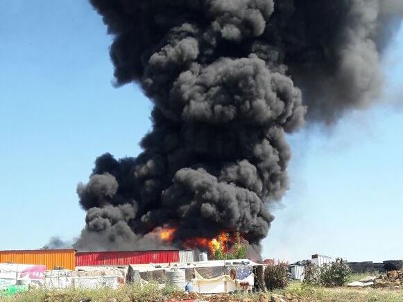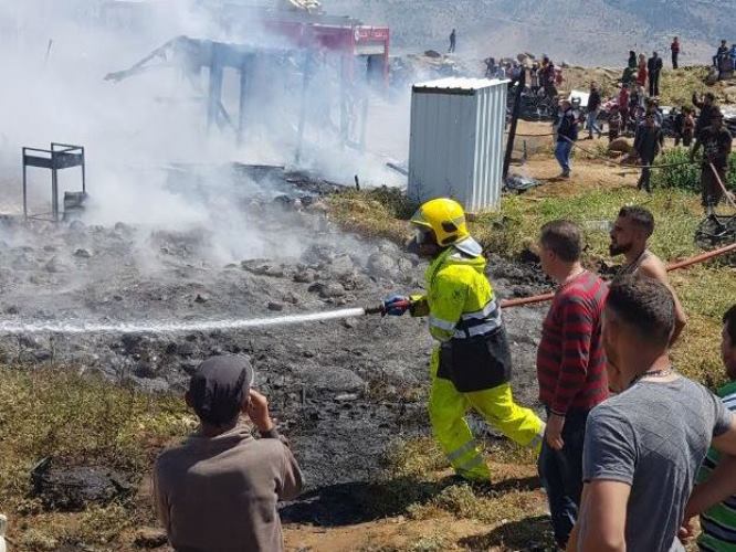 وقد أتى الحريق على المعمل بكامله إضافة إلى سبعة خيم للنازحين السوريين، إذ امتدّ الى عدة أماكن بفعل سرعة الرياح.