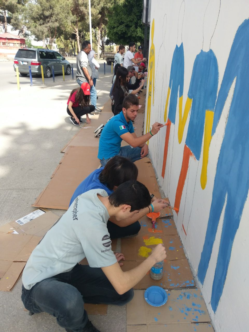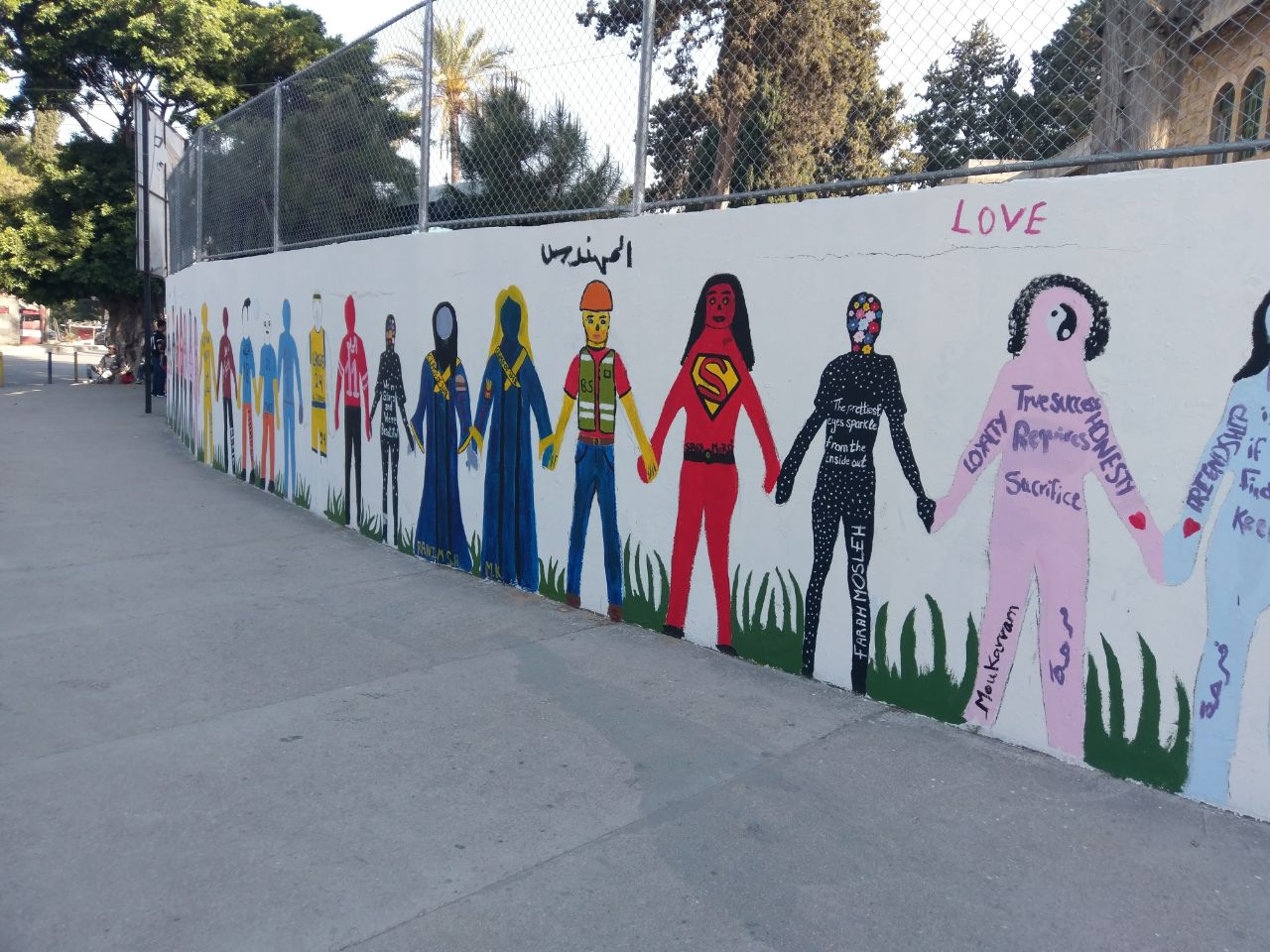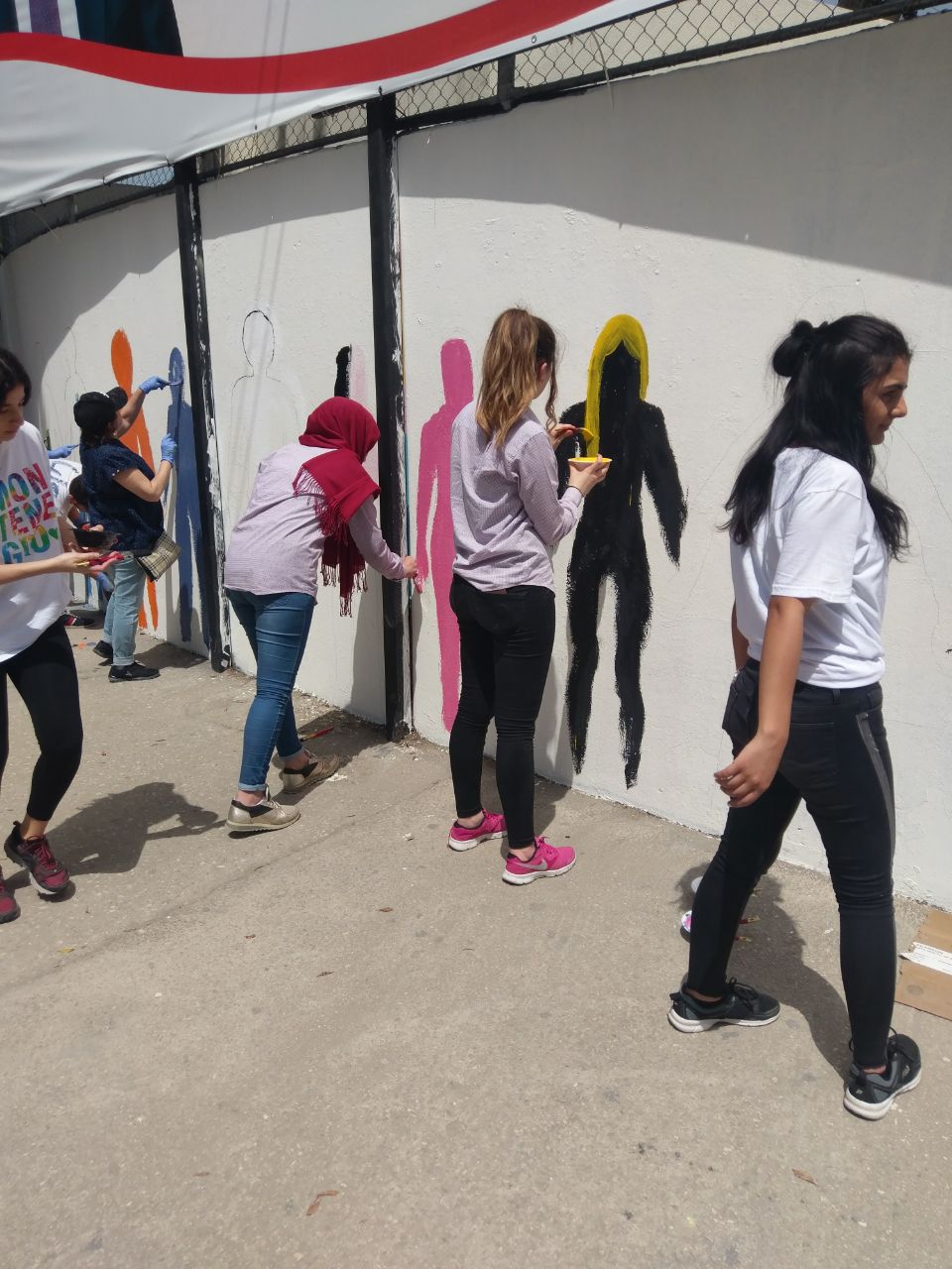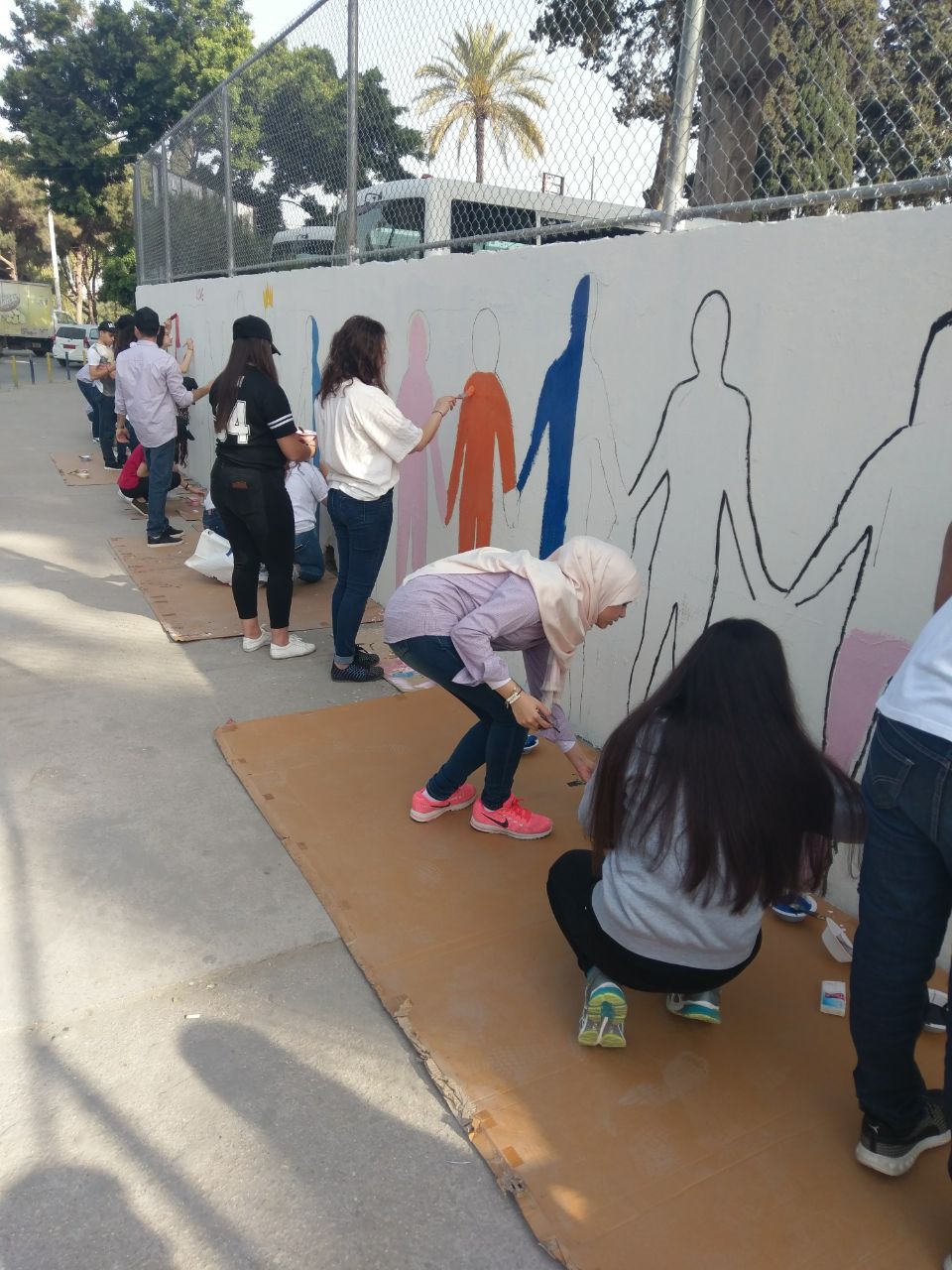تعبيرًا عن التضامن في ما بينهم، قام طلاب الصفوف المنتهية في مدرسة الفنون الإنجيلية برسم أنفسهم على حائط المدرسة متماسكين، حيث عبر كل طالب عن نفسه بالطريقة التي تعنيه.