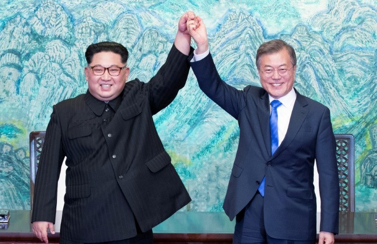 دخلت شبه الجزيرة الكوريّة حقبة جديدة من المسار الديبلوماسيّ مع القمّة التي تجمع اليوم الجمعة الرئيس الكوريّ الجنوبيّ #مون جاي إن بالزعيم الكوريّ الشماليّ كيم جونغ #أون. والتقى الرئيسان ببعضهما البعض عند التاسعة والنصف بالتوقيت المحلّي وتصافحا بداية وهما واقفان على جانبي الخطّ الفاصل بين الدولتين في المنطقة المنزوعة السلاح. وبدت علامات السرور واضحة على محيّا الرئيسين قبل أن يعبر كيم الحدّ الفاصل باتّجاه القسم الجنوبيّ من شبه الجزيرة حيث تبادلا المصافحة مجدّداً. والتُقطت لهما الصور التذكاريّة وهما ينظران باتّجاه الشطر الشماليّ من شبه الجزيرة قبل أن يلتفتا باتّجاه الشطر الجنوبيّ للغاية عينها.