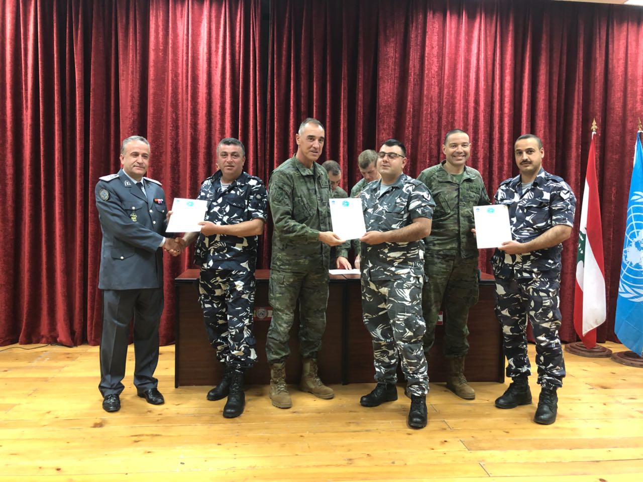 في ختام الدورة تم تبادل توزيع الشهادات على المشاركين لكل من الفريقين اللبناني والإسباني.