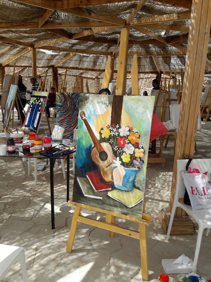 وعبّرت عضو الهيئة الإدارية في الملتقى،التشكيلية بسكال مسعود عن اعجابها بمنطقة دهب و شاطئ المرجان وقد استعملت الشعاب المرجانية في لوحتها لتنقل ما شاهدت على طول الشاطئ من روعات البحر والوان الاسماك الخلابة.