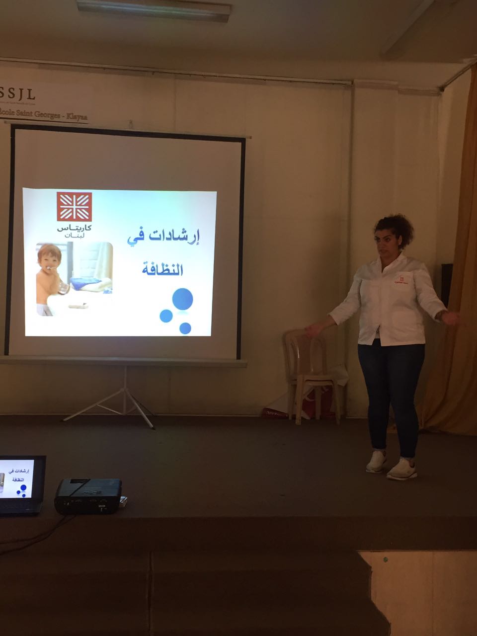 وقد قامت بهذه الحملة ممرضة العيادة النقالة لكاريتاس السيدة جانيت سعد وذلك ضمن مشروع الصحة المدرسية الممول من Polish aid - من وزارة الشؤون اﻹجتماعية لدولة بولندا. وبعد المحاضرة وزعت حصة للنظافة الشخصية لكل تلميذ بمساعدة شبيبة اﻹقليم المتطوعة. وقد استفاد من هذه التوعية 432 تلميذاً.