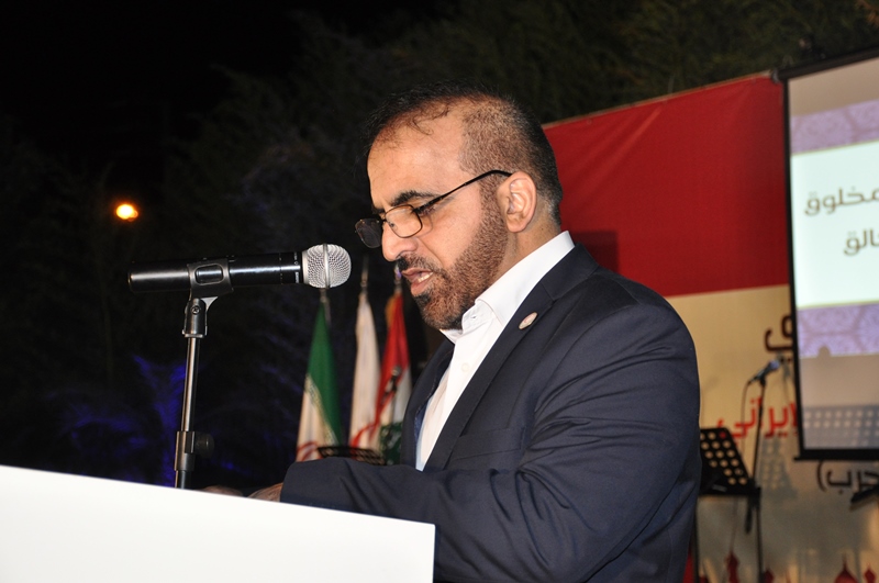 بعد آي من الذكر الحكيم للمقرىء حسين قاسم حايك، ثم النشيدين الوطني اللبناني والايراني، وكلمة ترحيب لمدير العلاقات العامة في المستشفى الزميل رائف ضيا ،فألقى ممثل الهلال الاحمر الايراني في لبنان مدير عام مستشفى الشيخ راغب حرب الدكتور جواد فلاح قال فيها: نبارك لكم جميعا" هذه الأيام المباركة للشهر الفضيل, وهذه الليلة المباركة التي توجت بولادة مولانا الإمام حسن المجتبى عليه السلام، وأرفع أسمى التهاني وأزكاها إلى مقام إمامنا وشفيعنا ومولانا المنتظر روحي وأرواح العالمين لتراب مقدمه الفداء, وإلى ولي أمرنا الإمام السيد علي الخامنئي حفظه الله ورعاه.