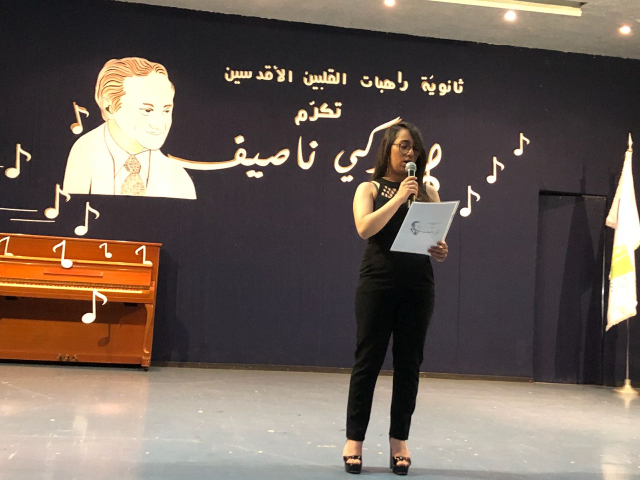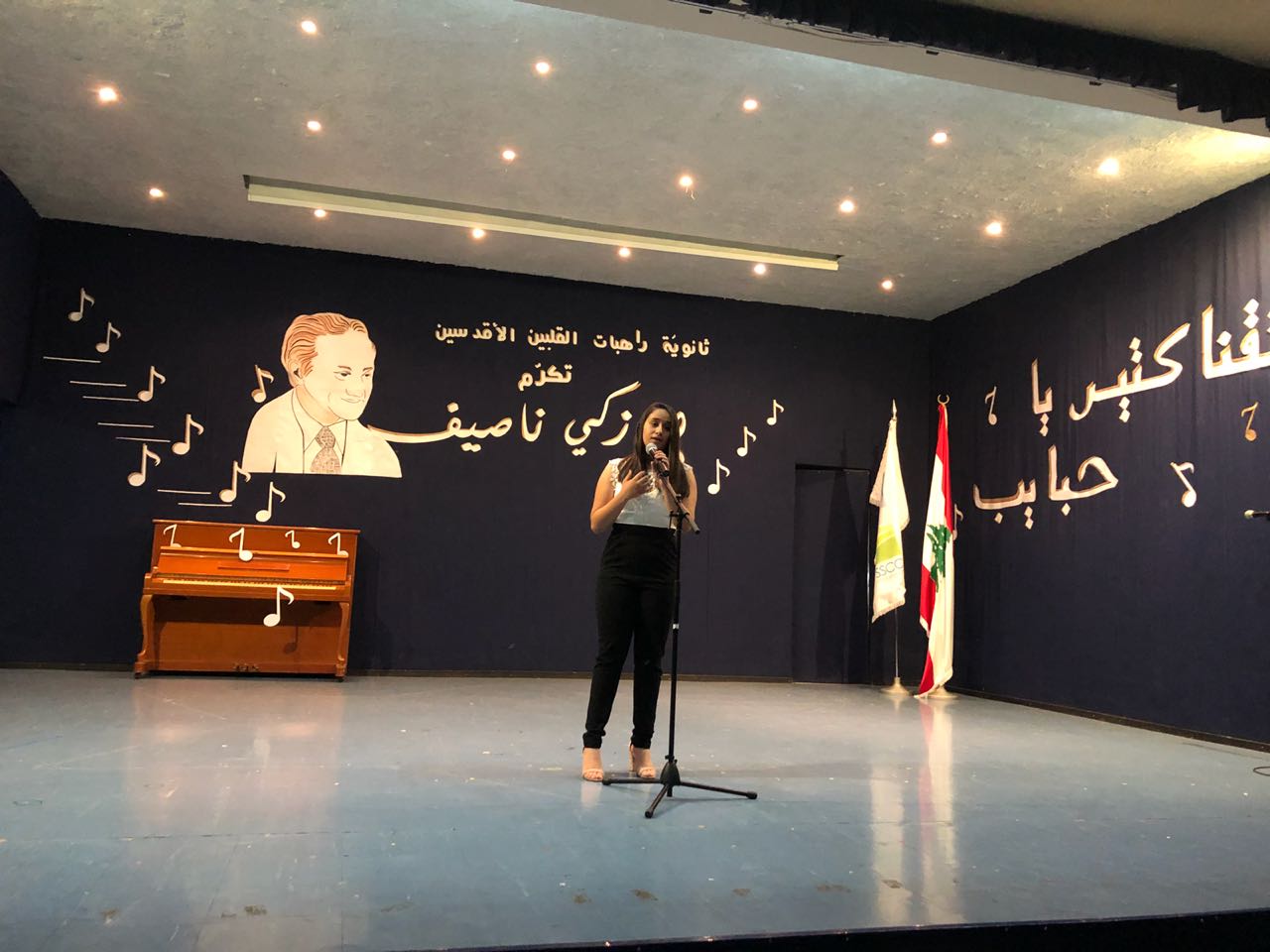 استهل الحفل بالنشيد الوطني. وبعد كلمة الترحيب افتتح برنامج الحفل بترنيمة "حنانك يا رب الأكوان" الشهيرة، وكانت باقة من اجمل أغاني المبدع الراحل قدمها طلاب ثانوية القلبين الأقدسين، بمشاركة نجم ذا فويس كيدز الطالب جورج عاصي.