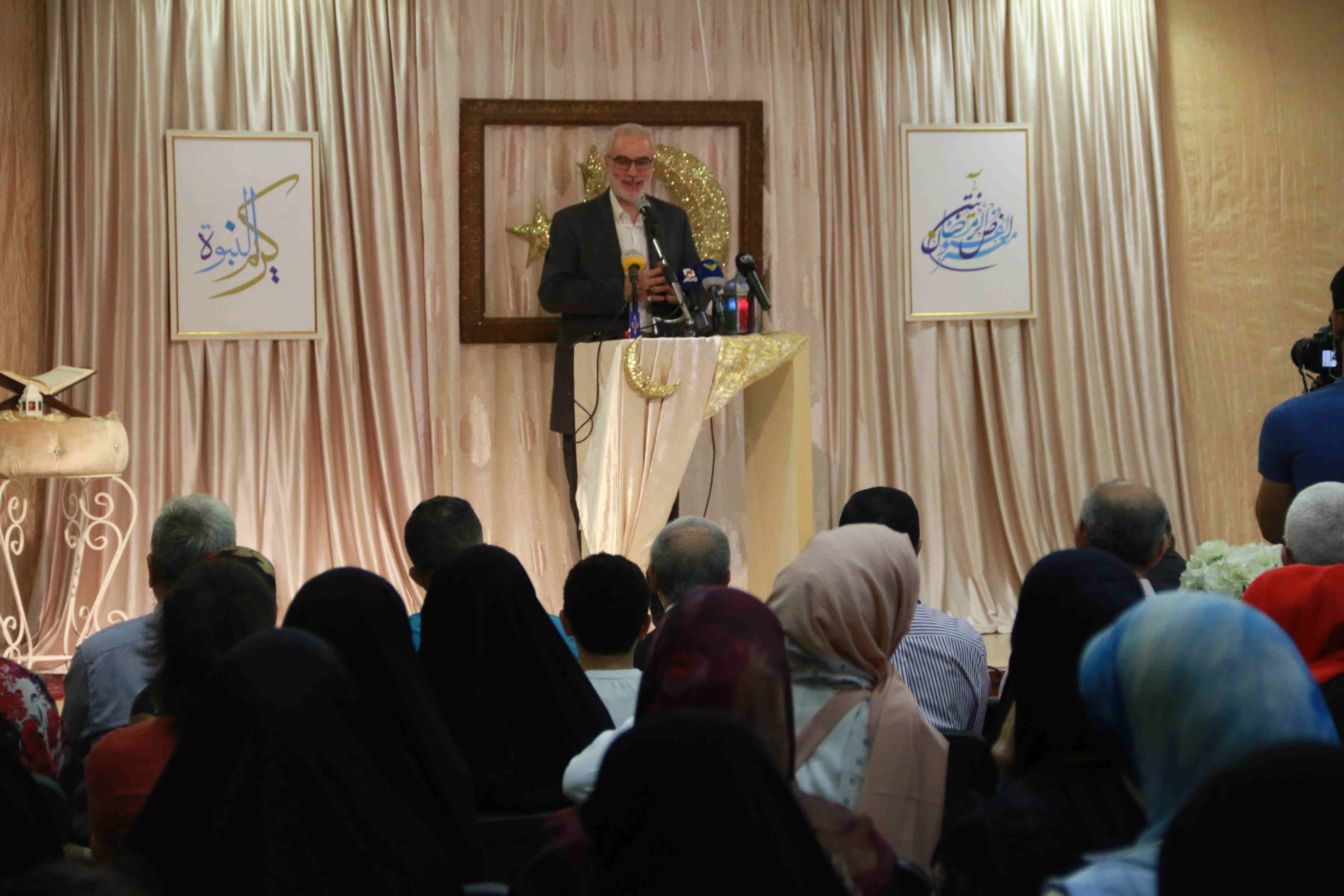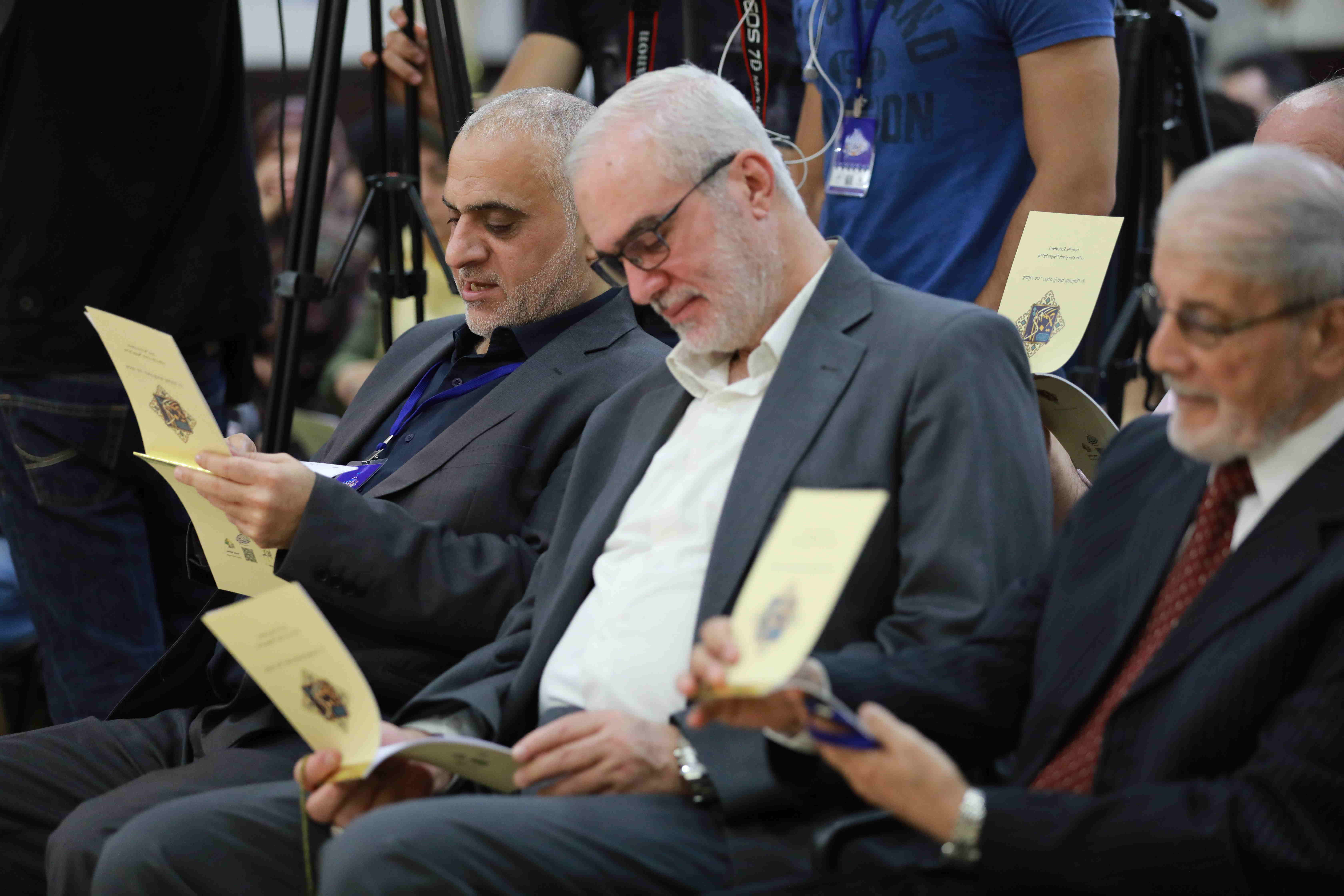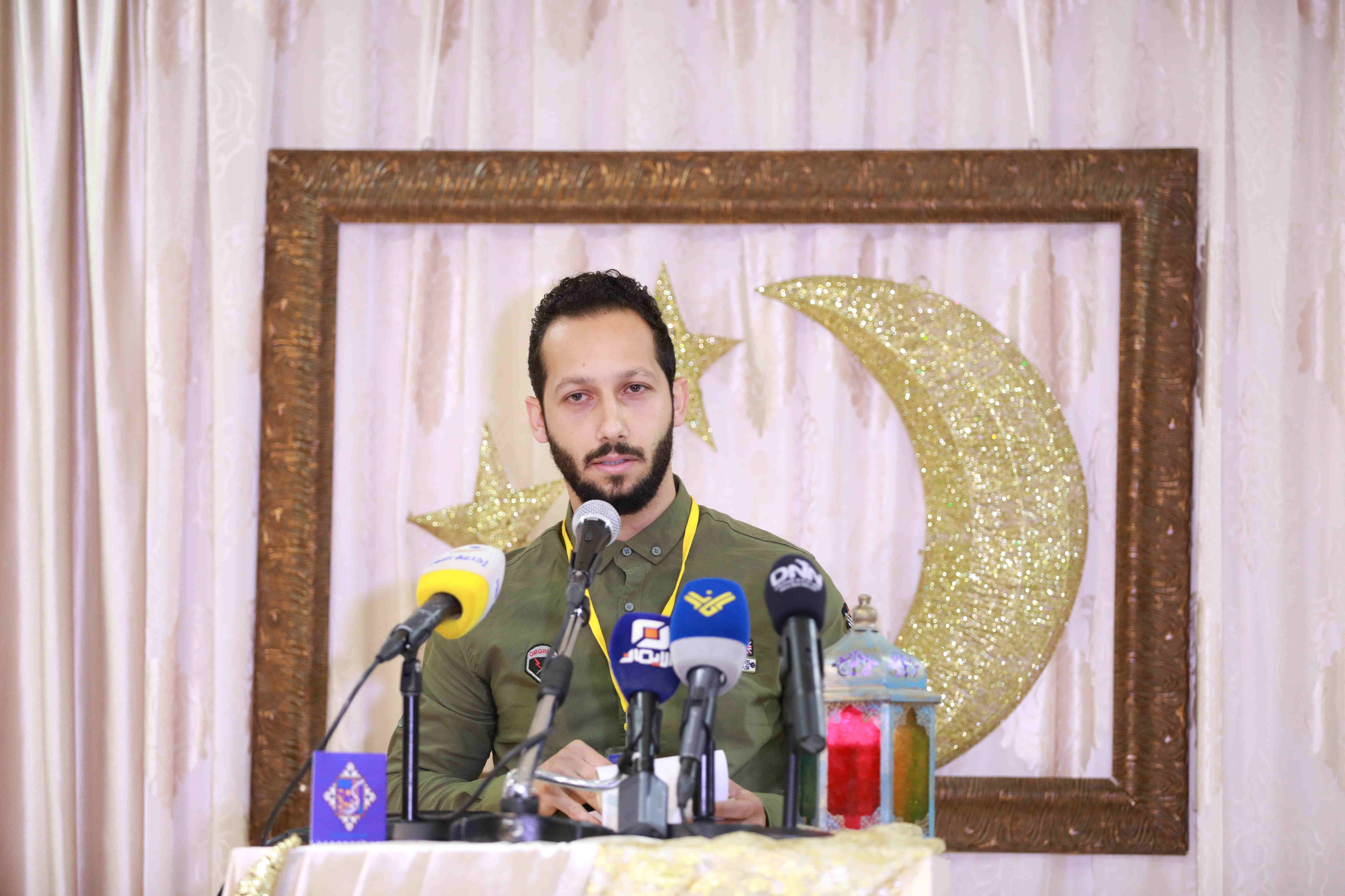 هذه اللوحات المنتشرة في الشق الأيمن من المعرض تتكامل مع لوحات أخرى عن شماله تحوي مخطوطات عربية، حيت تزخر اللوحات بالايات القرانية والزخارف بالخط العربي التي لك أن تتيه في جمال خطوطها المنسابة والمتناسقة. وفي منتصف المعرض هلال ونجمة يتوسطان منصة التكريم في حين تنتشر الموسيقى الرمضانية في الارجاء، وتتلالا الفوانيس في المعرض في جو روحي ورونق رمضاني جميل.