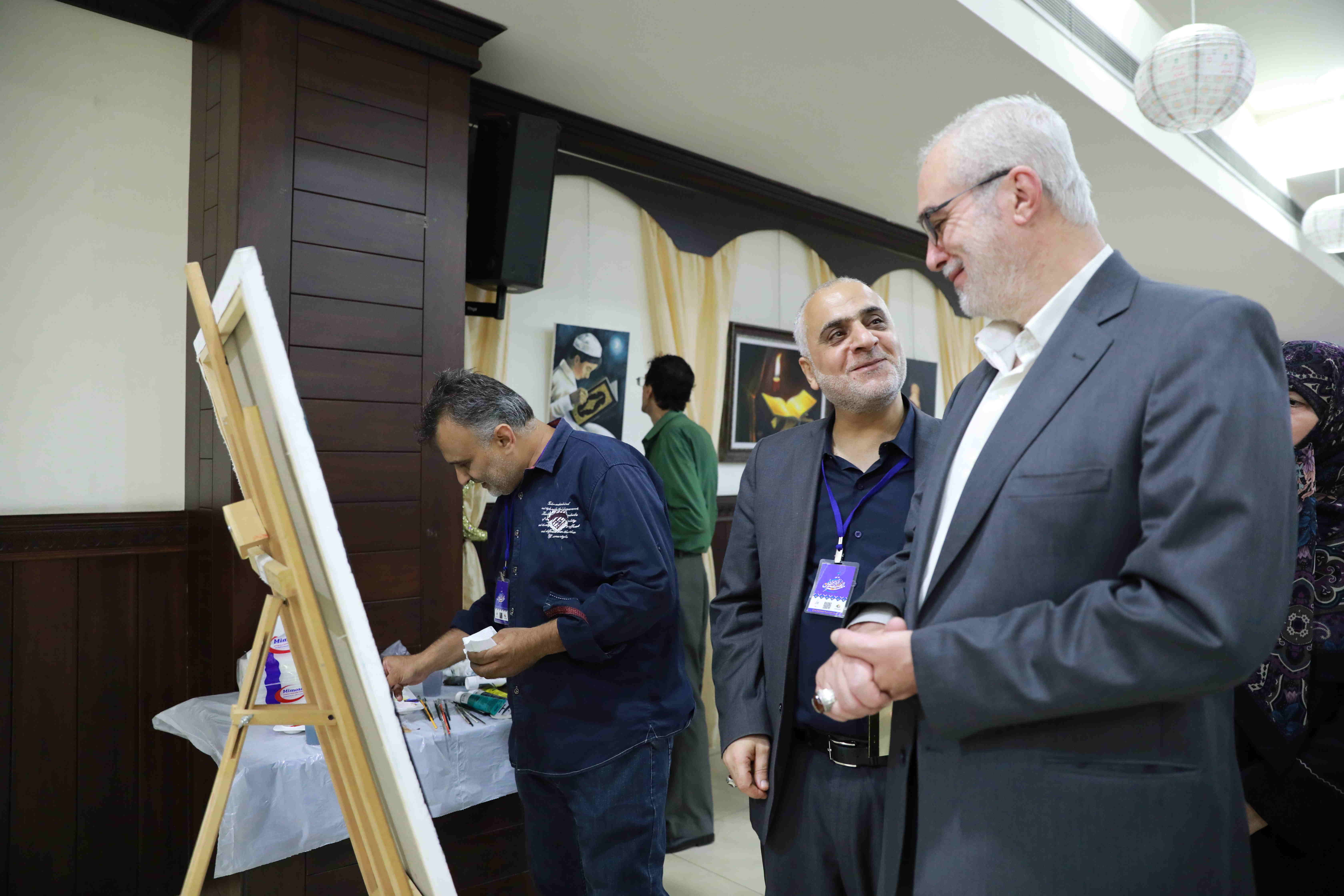 حقا "رمضانُ تجلَّى وابسمَ" في معرض الفنون الرمضانية في المركز الثقافي لبلدية حارة حريك، حيث اللوحات تختصر كل حكايات الشهر الفضيل، اذ تعكس الرسومات كثيرا من رموز التعبّد في شهر الرحمة ، فهنا يد تحمل سبحة زرقاء، وهناك قرآن يتوسط ليلا من اللون الأسود، أما المساجد فتكررظهورها في أكثر من لوحة، في حين ظهرت في لوحات أخرى العمارة الاسلامية، وسرعان ما يسرح النظر في رسومات ضمت شوارع مزينة في الشهر الفضل، فتجول فيها بناظريك حيث ترافقك ابتسامة ترسهما الالوان الزاهية.