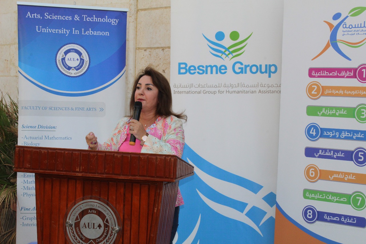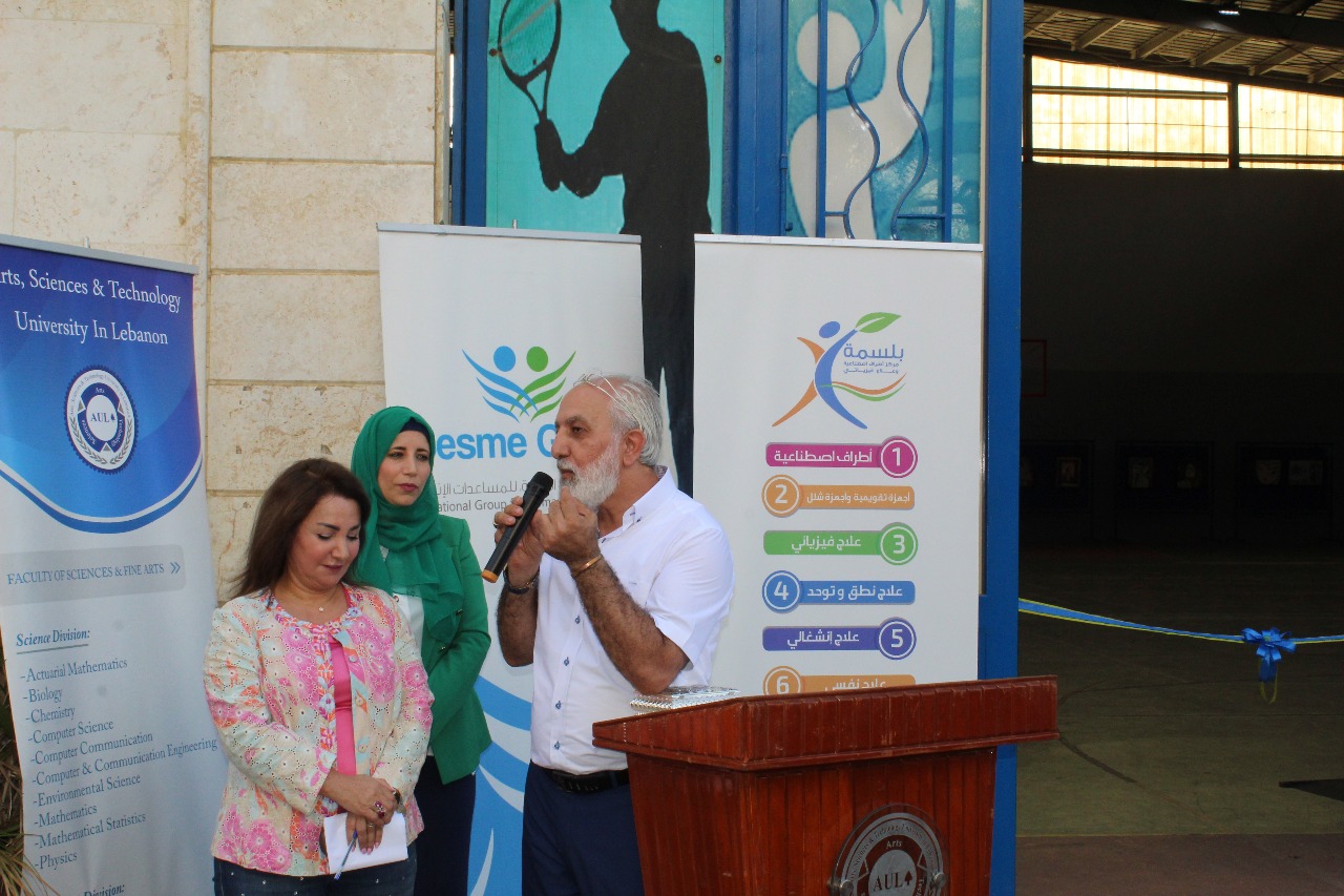 وقد ألقى كلمة جامعة ال AUL الأستاذ نزيه شما ممثلاَ مديرالجامعة الأستاذ فادي طه، وأبدى استعداد الجامعة الدائم لاستقبال جميع الفاعاليات التي تصب في مصلحة المجتمع، وتنمية مهارات الإنسان، كما ألقت مديرة مجموعة بسمة الدولية السيدة غولشان صاغلام كلمة، تحدثت فيها عن أهمية مرحلة الطفولة والشباب، وعن تنمية قدرات الأطفال، ومواهبهم، وحمايتهم كونهم شعاع أمل المستقبل، وعن أبرز مشاريع المجموعة في المجتمعات المهمشة التي تفتقر لأدنى درجات الأمن، والحياة الكريمة، كما عرفت السيدة صاغلام عن مركز بلسمة كشريك استراتيجي لمجموعة بسمة الدولية، ثم ألقى مدير مركز بلسمة الأستاذ رمزي زيدان كلمة، تحدث فيها عن أهمية التوعية المجتمعية، والتنمية البشرية المستدامة للجميع بما فيهم الأشخاص ذوو الإعاقة، وشكر الحضور كلُ بلقبه وصفته، مثنياً على الطاقم التدريبي والتعليمي في المشروع الفنان المبدع أحمد الدنان، الأستاذة سيرين موعد، والأستاذة ديانا عزام.