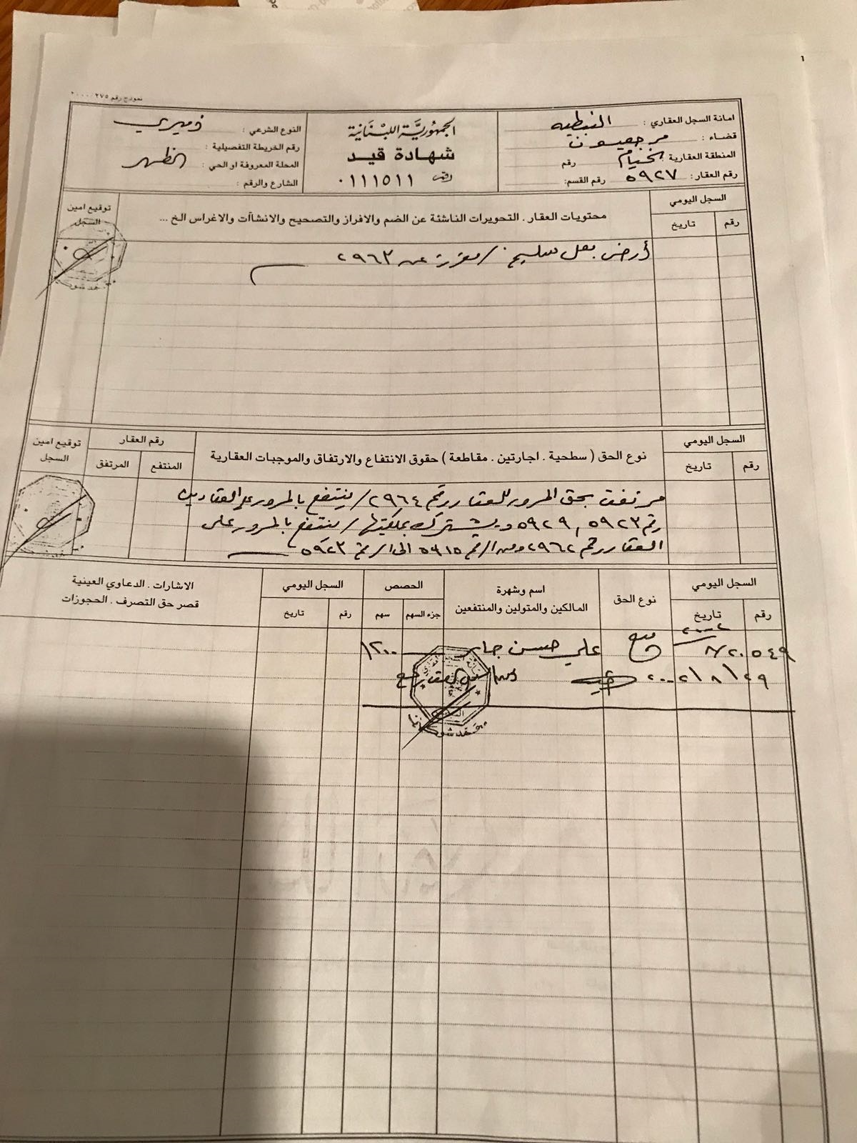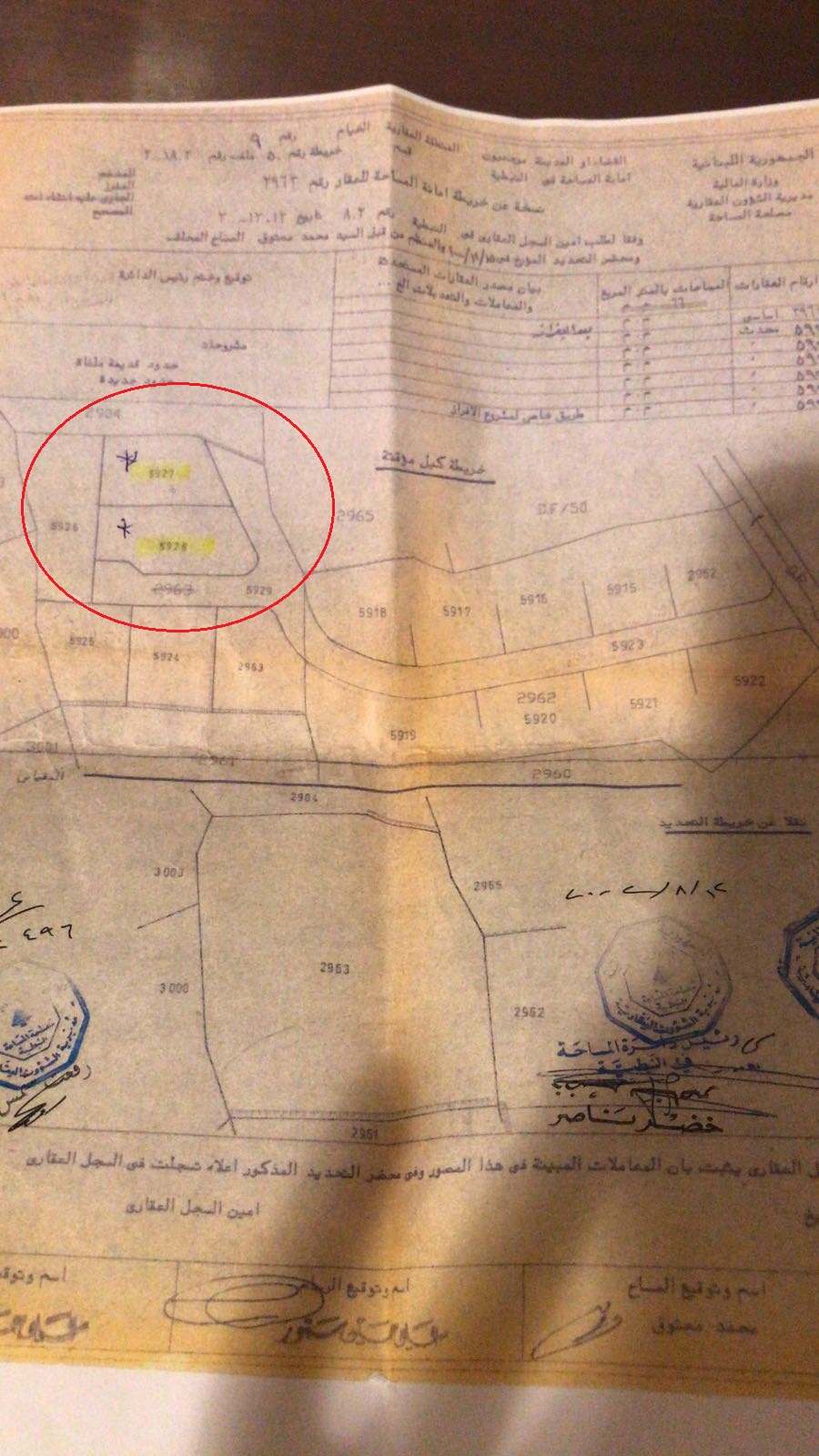 أرقام العقارين: 5927 (مساحته 829 م م) و5928 (مساحته 914 م م) ضمن منطقة الخيام العقارية).