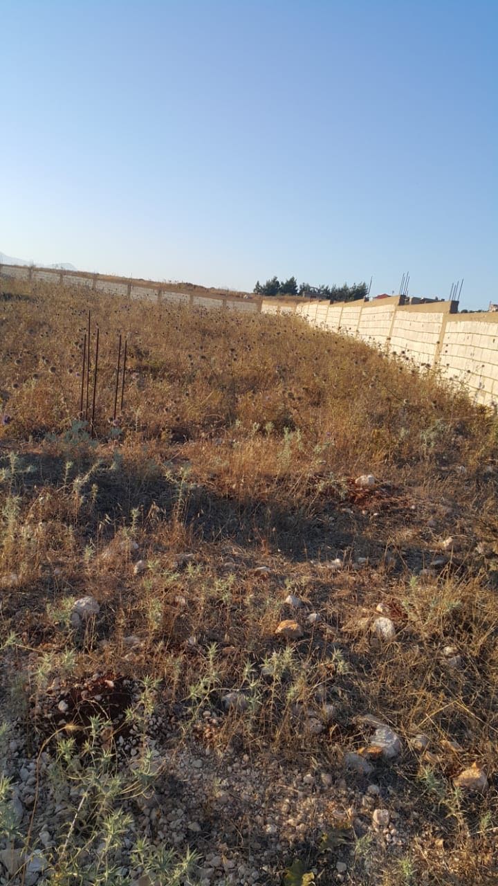 الأرض شبه مربعة، يحدّها طريق من جهتين.. وهي مفرزة إلى عقارين، تزنرهما تصوينة واحدة تضمهما.