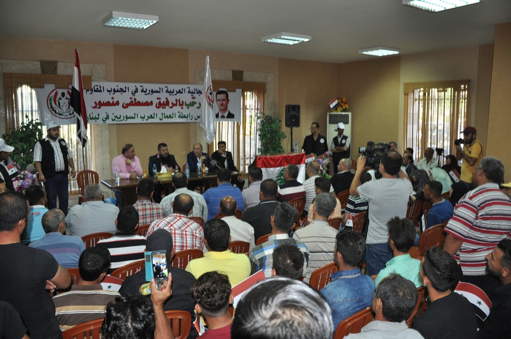 نظمت رابطة العمال العرب السوريين في لبنان لقاء حاشدا للنازحين السوريين في منطقة النبطية، في قاعة بلدية كفرتبنيت -النبطية، "بهدف البحث في عودة كريمة لمن يرغب الى حضن الوطن الغالي، وتسوية أوضاع جميع السوريين ونقلهم الى الاراضي السورية".