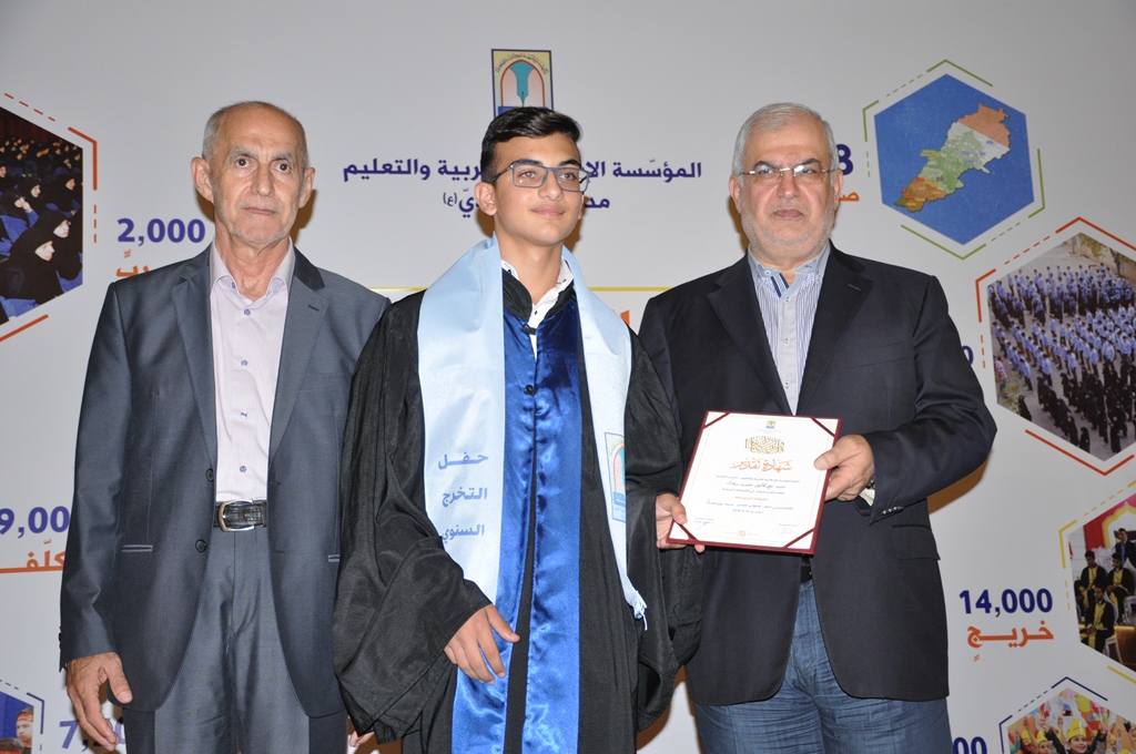 وبعد آي من الذكر الحكيم للمقرئ الطالب محمد مهدي، والنشيد الوطني ونشيد "حزب الله"، دخل موكب الطلاب المتخرجين وألقى المربي علي أسعد كلمة ترحيبية، تحدث بعدها مدير الثانوية محسن جواد الذي قال: "طلابنا يحملون رصيدا غنيا من المعارف العلمية والأدبية، ويتحلون بزاد طيب من القيم الخلقية والدينية الفاضلة، والسلوك الرصين الراقي. وسوف يكونون في المستقبل مؤهلين لقيادة المجتمع إن شاء الله. وقد بات معلوما أن التفوق والأمان عنوانان غالبان في مدارسنا، فقد أحرز تلاميذنا 41 درجة ممتاز، منها 8 درجات ضمن ال10 الأوائل على صعيد لبنان. العدد الإجمالي للناجحين في مدارسنا 1461 ناجحا. منهم 347 بدرجة جيد جدا، و433 بدرجة جيد. فيكون مجموع التقديرات 821 تقديرا. هذه النتائج المشرفة، ما كانت لتتحقق لولا سهر المعلمين واجتهاد التلاميذ وعناية الأهل الكرام، في تعاون مستمر طيلة العام الدراسي".