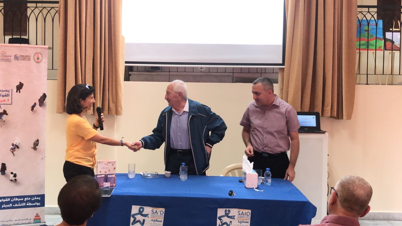 بداية تحدثت هنا نمر عن الجمعية التي تأسست "نتيجة تجربة شخصية بعد أن تم تشخيص إصابة زوجها بسرطان القولون وكان يبلغ من العمر 57 عاما، ما أدى إلى بدء مرحلة من المعاناة الجسدية والنفسية والمعنوية، فيما كان من الممكن تجنبها لو طلب طبيب العائلة فحص "FIT" ابتداء من سن الخمسين مع الفحوصات السنوية".