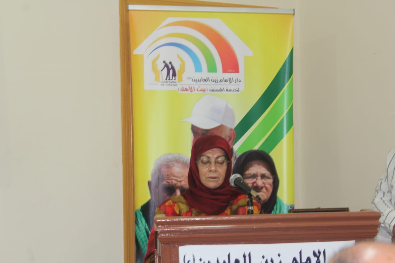 كلمة المسنين ألقتها الحاجة شمّا أبو عباس، تلاها فقرة موسيقية للأستاذ محمد بهجت وفرقته، ليتم بعدها تقديم درع تكريمي للحاج محمد حسن حمود عربوناً على مساهمته في تأسيس وإنشاء الدار.