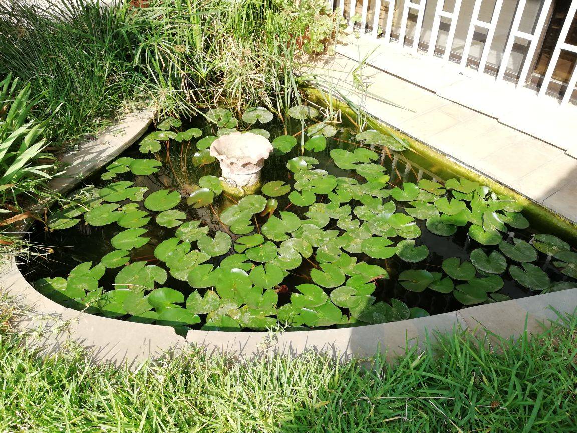 تصل إلى منزلها في الكحالة، تستقبلك بابتسامتها المتفائلة وسط بساط أخضر مفروش بالعشب تتربع فيه بركة صغيرة يطفو على وجهها زنابق الماء.