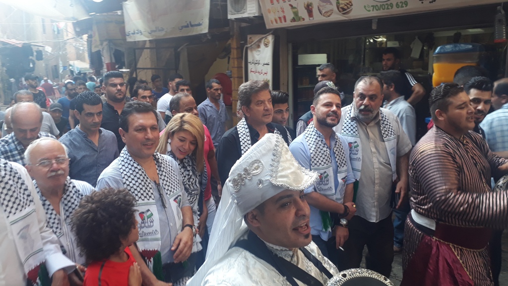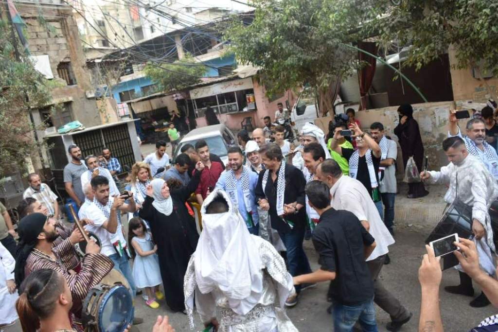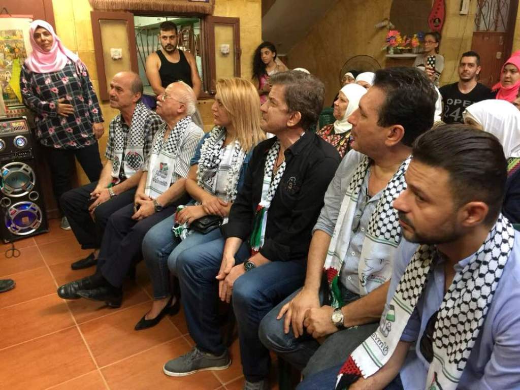 كما وجه التحية لهم الفنان عمار حسن القادم من فلسطين حيث عبّر عن اعتزازه بزيارة المخيمات الفلسطينية في لبنان، لأن المخيم هو أصل الحكاية وهو عنوان العودة إلى فلسطين، ثم قدّم الفنانون وليد توفيق وعمار حسن وأيمن أمين وإبراهيم عيّاش أغانٍ فلسطينية تفاعل معها الحضور.