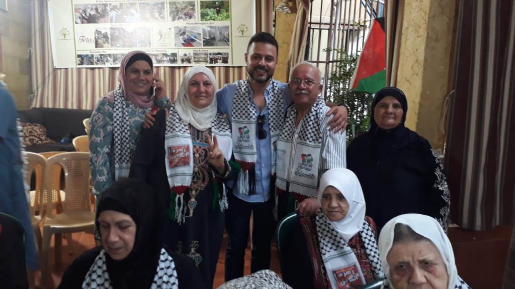 المحطة الرئيسية كانت زيارة "دار الشيخوخة النشطة" في وسط المخيم حيث كان لقاء مع كبار السن الذين عاشوا النكبة ومازالوا يحتفظون بمفاتيح العودة حيث استقبلوا الوفد بالزغاريد ثم قدّم الفنانون لهم وردة وكوفية وتناولوا معهم حلويات العيد.