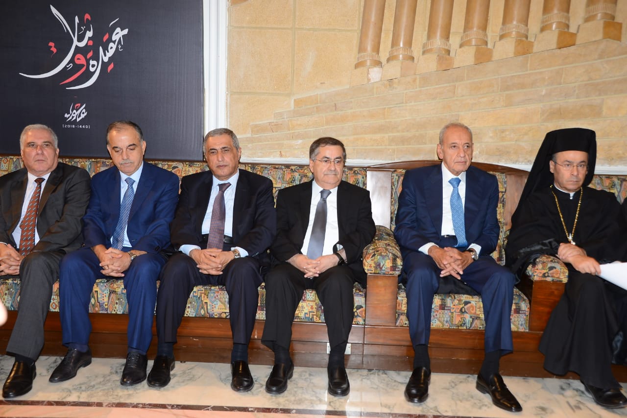 احيا رئيس مجلس النواب اﻻستاذ نبيه بري الليلة الثالثة من ليالي عاشوراء بمجلس عزاء حسيني اقيم في قاعة ادهم خنجر في دارته في المصيلح حضرها الى جانب رئيس المجلس النيابي ، النواب ميشال موسى ، ايوب حميد ، قاسم هاشم ، نائب رئيس حركة أمل هيثم جمعة ، المدعي العام المالي القاضي علي ابراهيم ، مدعي عام الجنوب القاضي رهيف رمضان ، راعي ابرشية صيدا ودير القمر للروم الملكيين الكاثوليك المطران ايلي حداد ، عضوي هيئة الرئاسة في حركة أمل جميل حايك وخليل حمدان ، عدد من اعضاء المكتب السياسي والهيئة التنفيذية في حركة امل ، لفيف من العلماء وممثلين عن الطوائف الروحية ، ووفد من مشايخ طائفة الموحدين الدروز ، رئيس تيار النهضة الشيخ غازي حنينة ، رئيس رابطة مخاتير قضاء جزين جهاد يوسف على رأس وفد من مخاتير المنطقة ، حشد من الفعاليات والقيادات اﻻمنية والعسكرية والقضائية ، رئيسا اتحاد بلديات الشقيف وساحل الزهراني محمد جابر وعلي مطر ، وفعاليات بلدية واختيارية واقتصادية واغترابية وحشود شعبية من مختلف المناطق غصت بهم قاعة ادهم خنجر والباحات المحيطة .
