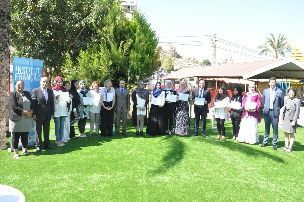 بعد ذلك ازاحت اولانيون وتاج الدين ولحاف الستارة عن لوحة تؤرخ للمناسبة، ثم وزعوا شهادات تقديرية لاساتذة خضعوا لدورات تربوية مختصة