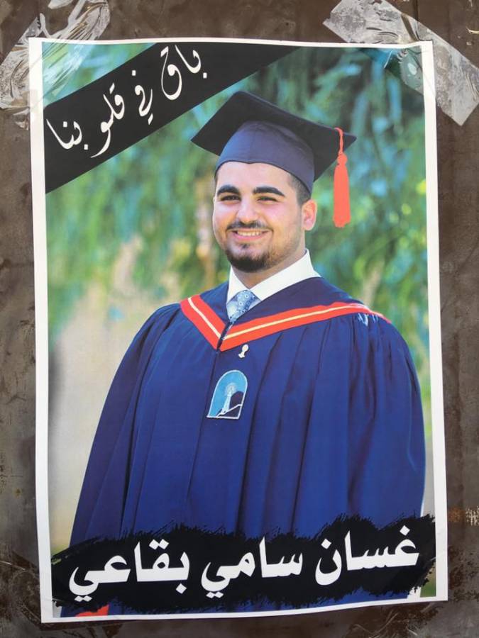حشود غفيرة شاركت في تشييع الفقيد الذي حمل على الأكتاف ملفوفاً بالعلم الفلسطيني من منزل عائلته بالقرب من دوار القدس الى "مسجد الشهداء"، فمدافن صيدا الجديدة، ليلتحف بعدها التراب معلناً نهاية شاب كانت يفصله عن عامه العشرين اسابيع قليلة، فكما قال والده، "كان سيطفئ شمعته العشرين في الاول من شهر تشرين الثاني، وبدلاً من ذلك انطفأت حياته، رحل عنا بعدما كان مالئاً حياتنا فرحاً وحيوية"، لافتاً" الى أنّ "والدة غسان وشقيقته التي تتابع دراستها الجامعية وشقيقيه يسكنون في ميلانو، اما انا فكنت في لبنان عند وقوع الحادث، حيث تلقيت الخبر الكارثي، تواصلت مع قنصلية لبنان هناك، انجزت اوراق نقل جثمانه، وبعدما اكرمنا الميت بدفنه، أتابع نتيجة التحقيقات لمعرفة التفاصيل وقطع الشك باليقين".