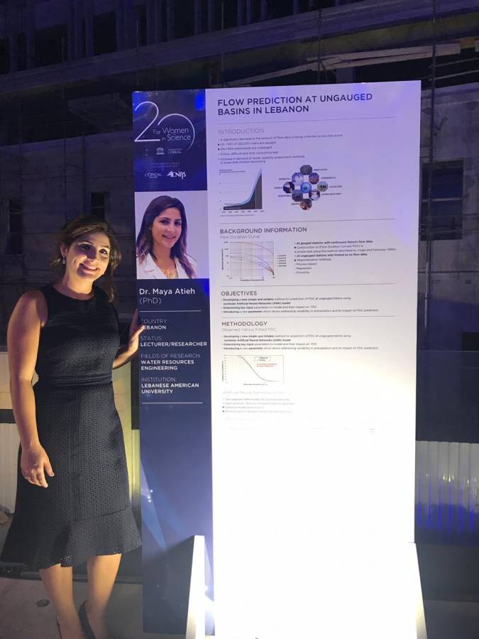 أما الدكتورة مايا عطية فقد حازت درجة الدكتوراه عام 2017 في مجال هندسة الموارد المائية من جامعة Guelph في كندا. حصلت على منحة العلوم الطبيعية والهندسية التابعة لمجلس كندا (NSERC) لعملها في استكشاف أدوات هندسية جديدة للتنبؤ بدقة أكبر بتدفق المجاري والرواسب في المواقع البعيدة والتي تعتبر مواقع محتملة لتوليد الطاقة الكهرومائية الصغيرة. يتم تطبيق المعرفة والتقنية المستفادة من هذه المشاريع البحثية في الصناعات الحالية، وقد تم اعتمادها من وزارة الموارد الطبيعية في أونتاريو. كما عملت الدكتور عطية في مشاريع تحليل التباين الزماني والمكاني للأمطار ونشر أثره على بيانات التدفق، وتخصيص الموارد المائية لتلبية الطلب على مياه الري في لبنان. تقوم أبحاثها الحالية بتقييم كمية المياه في الأحواض غير المقاسة باستخدام الشبكات العصبية الاصطناعية ونماذج برمجة التعبير الجيني ونظام المعلومات الجغرافية. وقد نشرت العديد من الأوراق العلمية في المجلات ذات التأثير الكبير وقدمت النتائج التي توصلت إليها في المؤتمرات الدولية. خلال العام الماضي في لبنان، عملت عطية كمحاضر في جامعة سيدة اللويزة والجامعة اللبنانية الأميركية. تأمل عطية أن تشعر الأجيال القادمة بالإلحاح في منع الأضرار التي لحقت بأرضنا وعكس مسارها.
