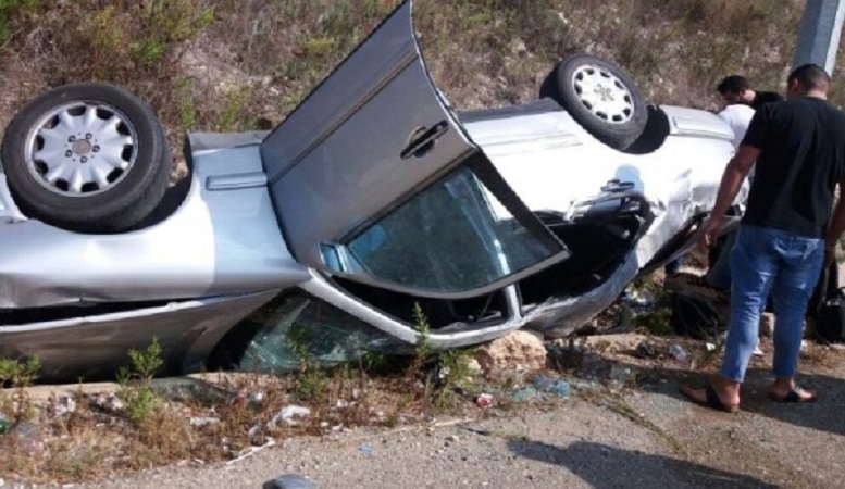سيارة المرسيدس بعد انقلابها على طريق حام - طفيل الجردية
