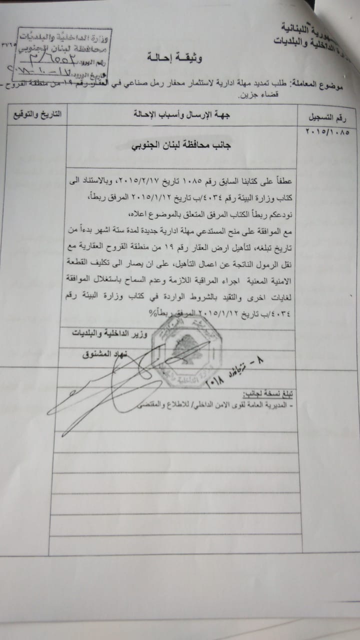 فإننا من هنا ومن منطلق المسؤولية والمصداقية والشفافية فإن ما يخص هذه المرملة الجديدة نوضح وبشكلٍ صريح وواضح أنه ليس لنا أي علاقة لا من قريب ولا من بعيد بأعمال هذه المرملة، ونأمل من اهلنا و دعاة البيئة والمتحمسين مطالبة وزير الداخلية ووزير البيئة ومحافظ لبنان الجنوبي عن هذا الأمر والكف عن التعرض لنا بغير علم ولا يقين.