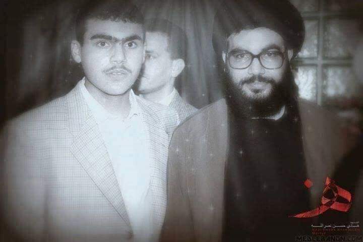وفي الصورة الثانية سماحة الامين العام السيد حسن نصر الله (الذي يتهمونه بولائه للخارج) وابنه الشهيد هادي الذي استشهد (في سبيل تحرير الجنوب، دفاعاً عن لبنان) ايام الاحتلال "الاسرائيلي"..