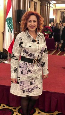 وخلال مشاركتها في الغداء السنوي ل Women’s Leagueالذي نظمته ال AUBفي الكورال بيتش ارتدت فستانا من تصميمها يختصر جزءا من مسيرة طويلة من الابداع، ووصفته بالقول: صممت عملاً فنياً من أخبار الصحف يوثق مسيرة الأعمال الفنية في الصحف"، وقد شكل هذا الفستان الأنيق فكرة مختلفة وجديدة، كما يعد توثيقاً لزمن تواجه